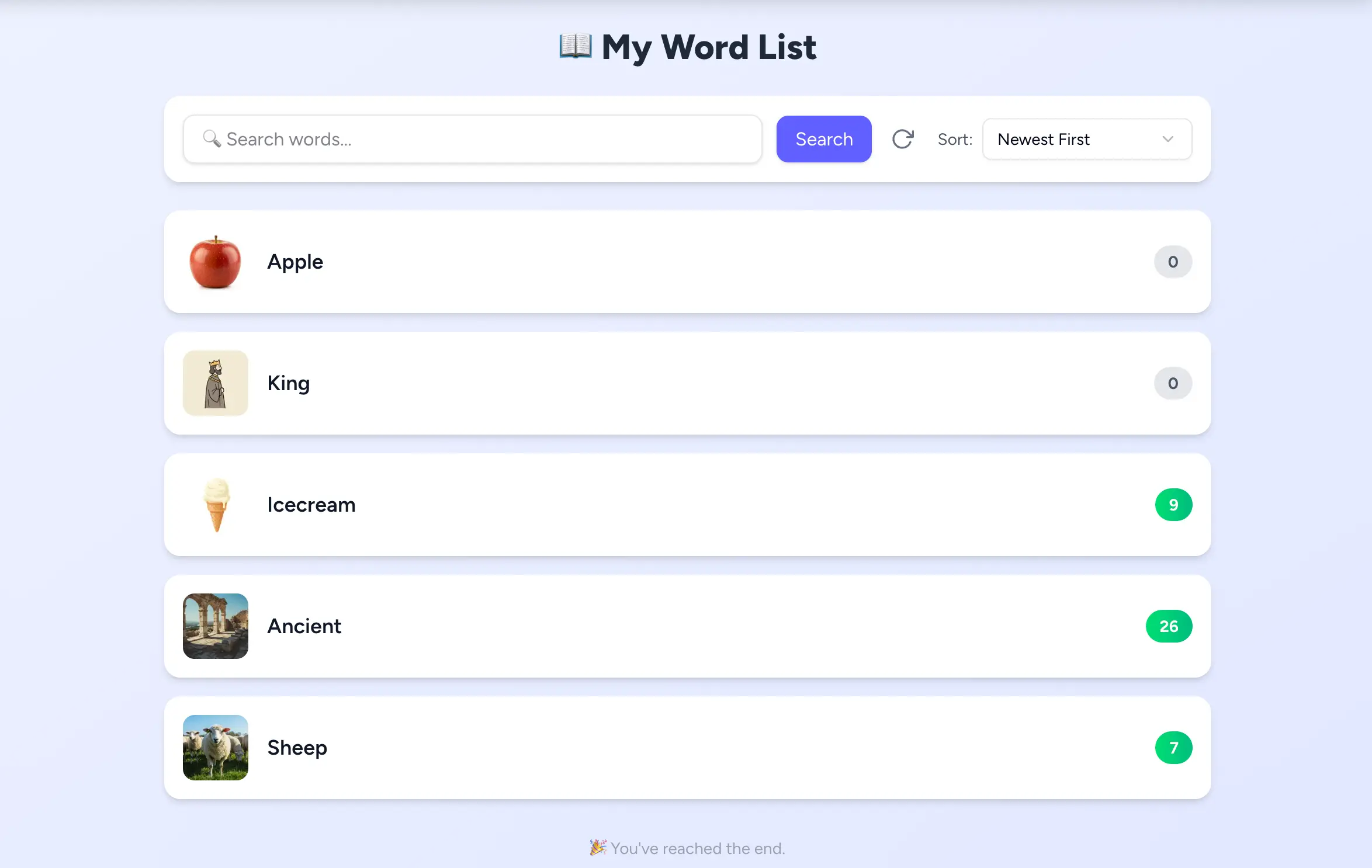 語彙学習をサポートするアプリを作りました! あまり使われない単語や抽象的な単語は、なかなかイメージがつかみにくく、学習が難しいことがあります。そこで、このアプリでは覚えたい単語に対応する画像を生成し、視覚的な連想を通じてより効果的に語彙を学べるようにしています。 さらに、フラッシュカード形式のスワイプテスト機能によって、定期的に復習したり忘れてしまった単語をチェックしたりできるため、記憶の定着をさらに強めます。 無料でお試しいただけますので、ぜひアカウント登録をして使ってみてください!