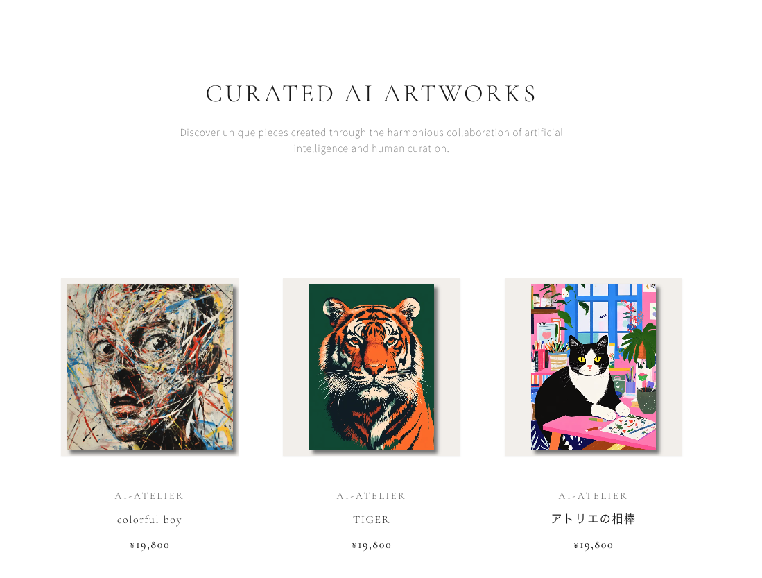 「AI Atelier」は、AIの絵をキュレーターが選出して選ぶ唯一無二のAIアート作品を提供するオンラインギャラリーです! AIの絵をキャンバスにして発送します!