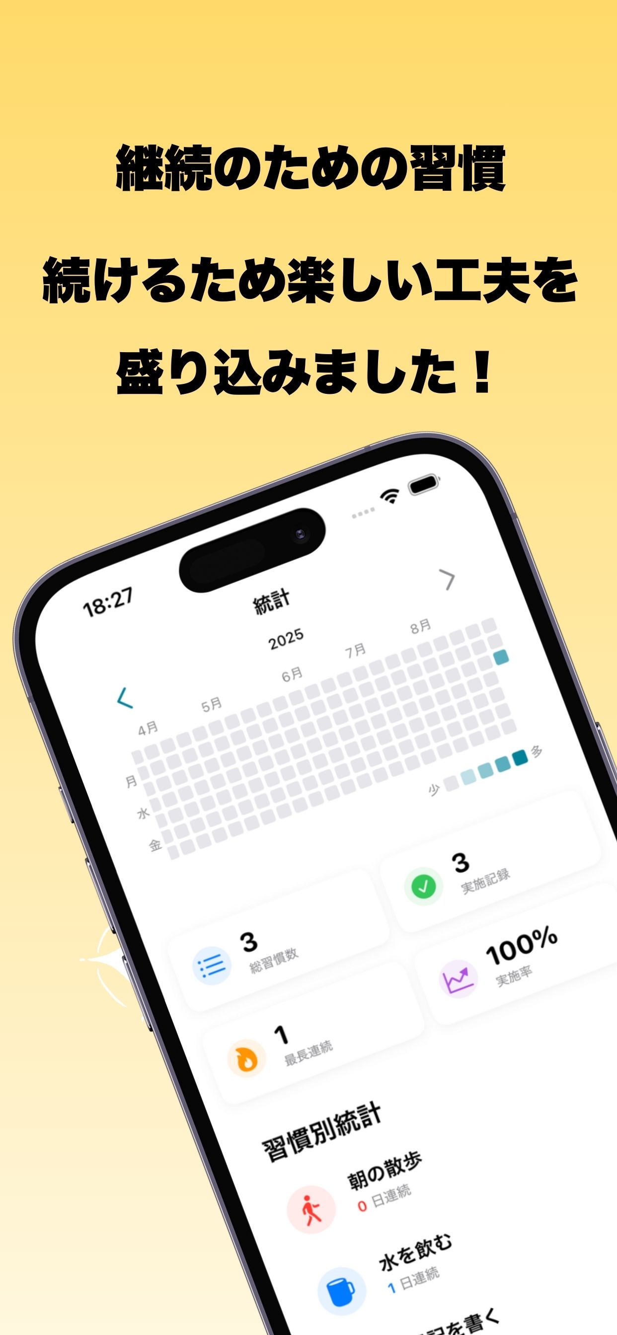 昨年は朝活時間で作ったアプリを30個リリースしました。 そんな習慣を支えてくれるのがこのアプリとなります。 是非一度、お試しください。 --- ** あなたの理想の毎日を作る習慣トラッカー** 小さな習慣から、大きな変化を。Habinは、美しいデザインと直感的な操作で、習慣作りを楽しくサポートするiOSアプリです。 ** 主な機能** ** 美しい統計とグラフ** • GitHubスタイルのコントリビューショングラフ • 365日の活動を一目で確認 • 連続記録(ストリーク)の可視化 • 詳細な統計情報で成果を実感 ** 美しいカスタマイズ** • 豊富なアイコンと色の組み合わせ • ダークモード完全対応 • 個人の好みに合わせたテーマ設定 • 洗練されたユーザーインターフェース ** 継続をサポート** • カスタマイズ可能なリマインダー通知 • 最適なタイミングでやさしくお知らせ • 目標設定と進捗管理 • モチベーションを保つゲーミフィケーション ** 履歴とカレンダー** • 実施した習慣の履歴表示 • 月別・日別の詳細記録 • 過去の成果を振り返り • 長期的な成長トレンドを把握 ** 多言語対応** • 日本語・英語サポート • 直感的な操作で言語の壁なし **こんな方におすすめ:** • 習慣作りを始めたい方 • 継続が苦手な方 • 成果を実感したい方 • 効率重視の方 習慣を変えれば、人生が変わります。あなたの理想の毎日は、たった一つの習慣から始まります。 今日という日を、変化の始まりにしませんか?
