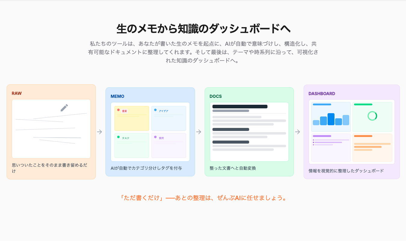 書くだけで自律的にまとめてくれるメモツール