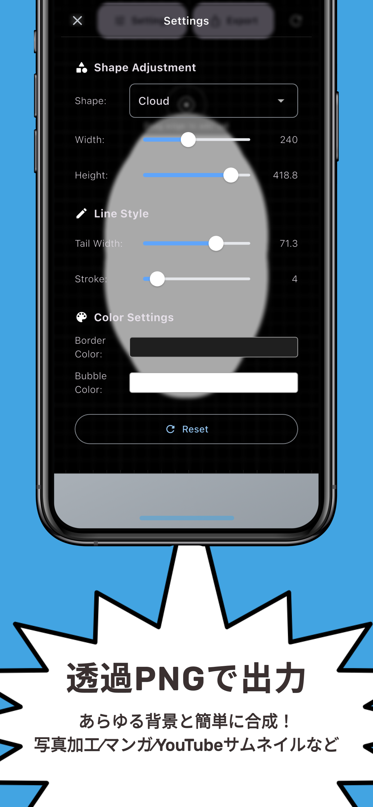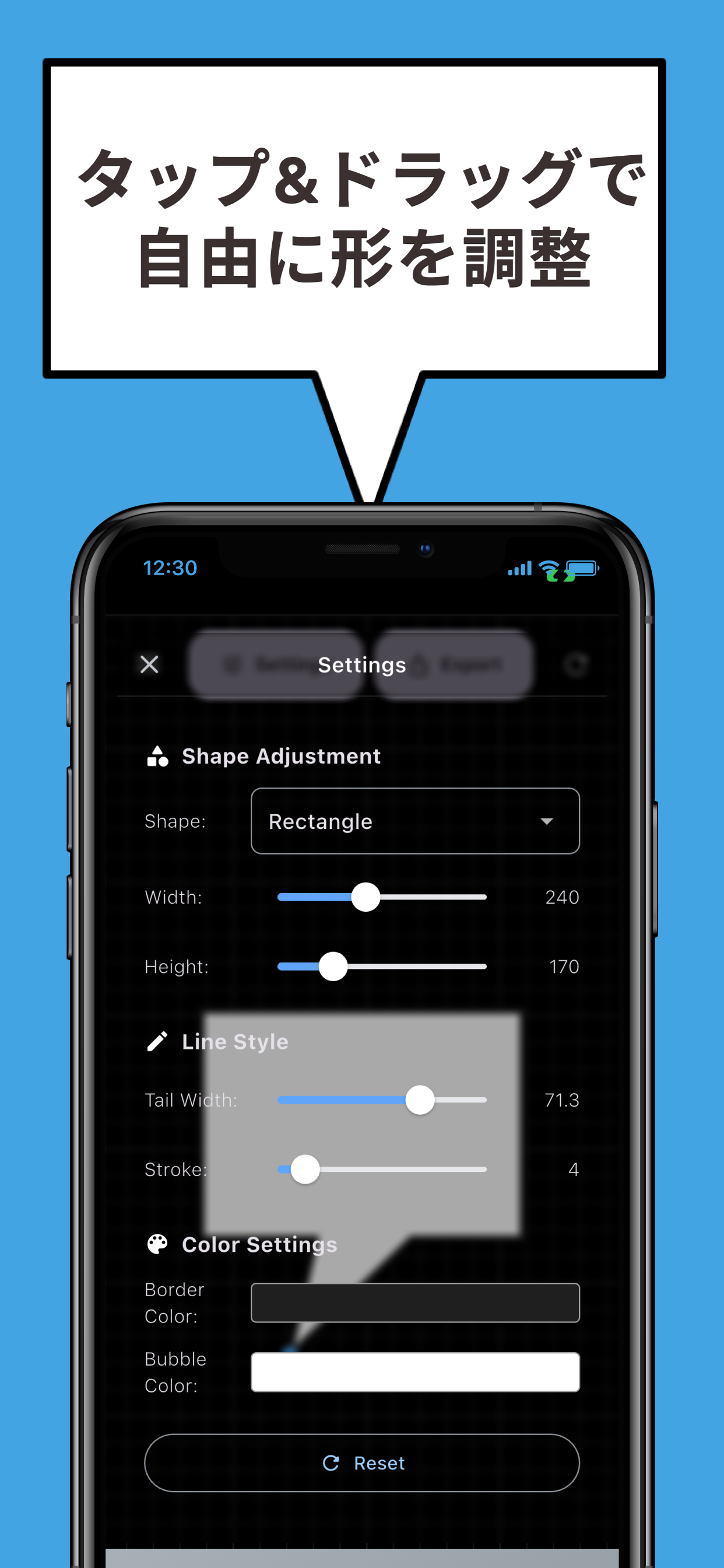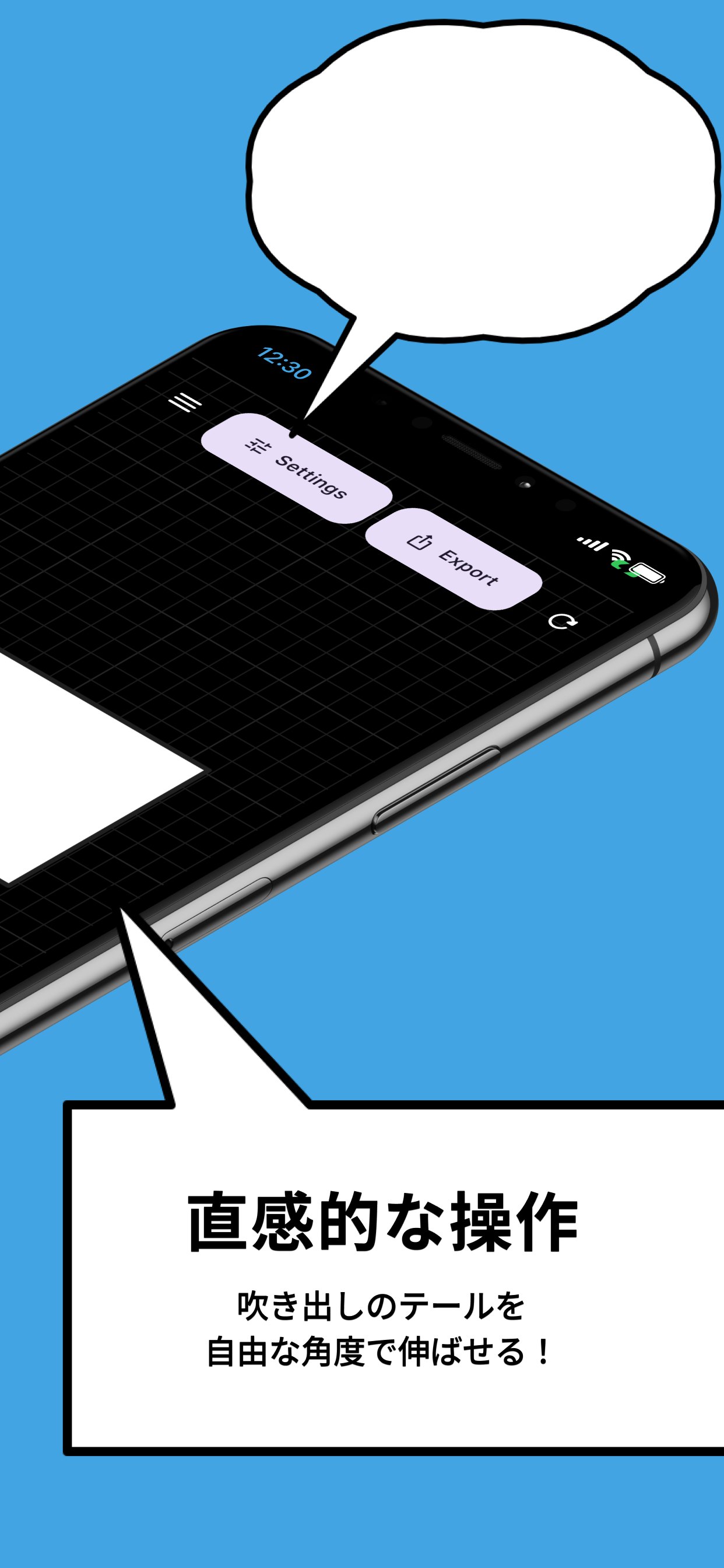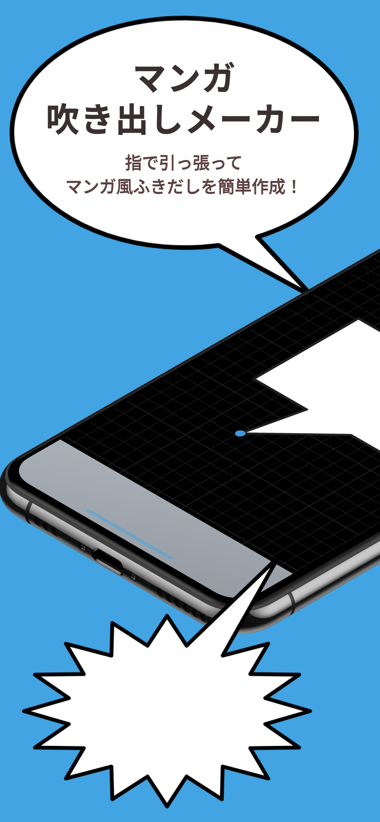 指でひっぱってマンガ風ふきだしを簡単作成!