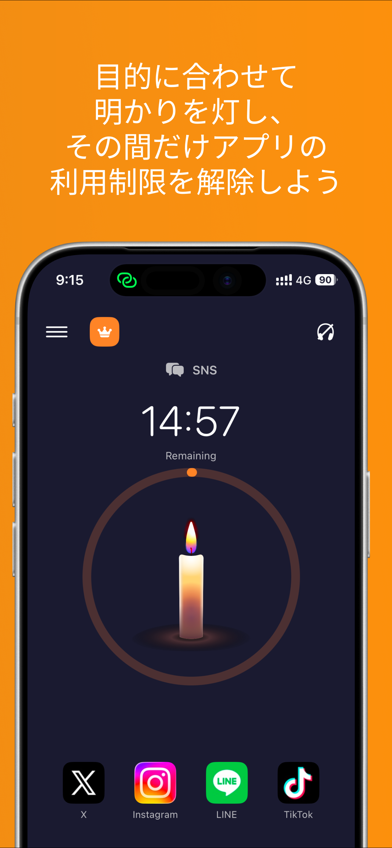 全アプリに24時間制限をかけ、必要な時だけ解除する。「ブロック」ではなく「選んで灯す」、逆転の発想のデジタルウェルビーイングアプリ。