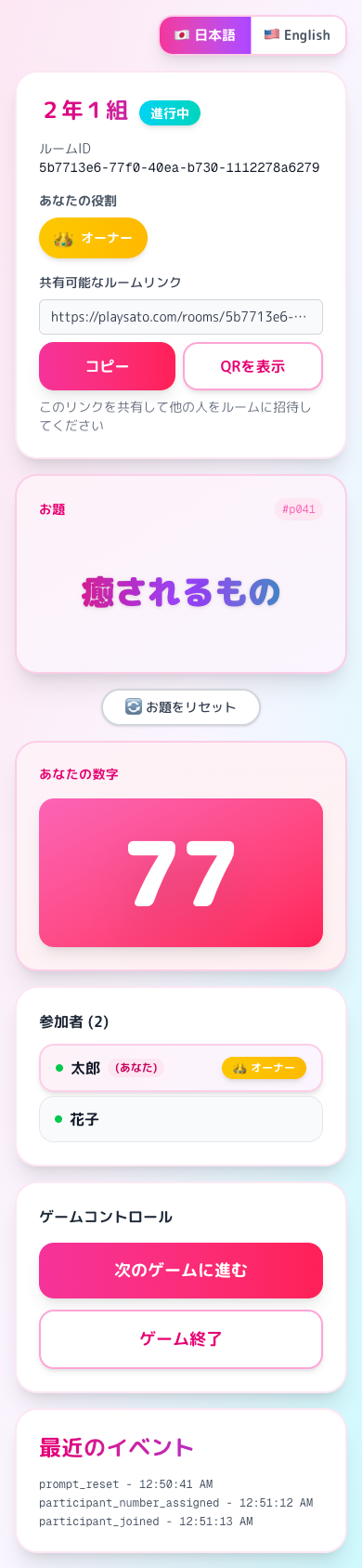 あの数字当てパーティーゲームをオンラインで実現。あのゲームを忘れたときはぜひオンラインで。