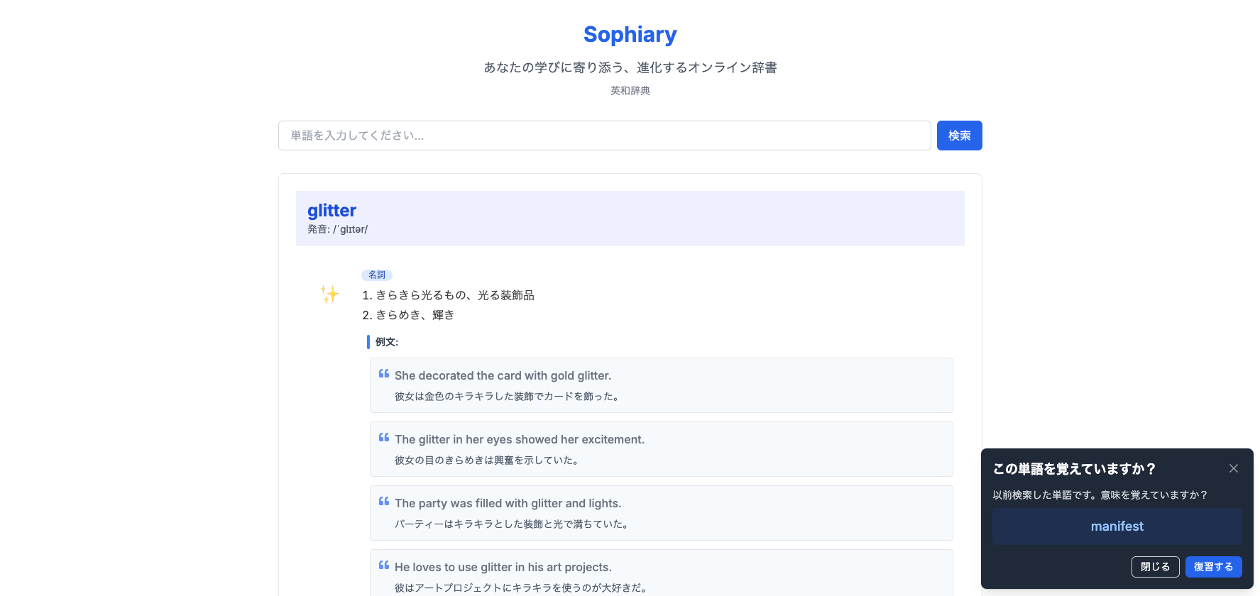 調べた単語履歴を元に、学習をサポートしてくれる動的学習Online辞書