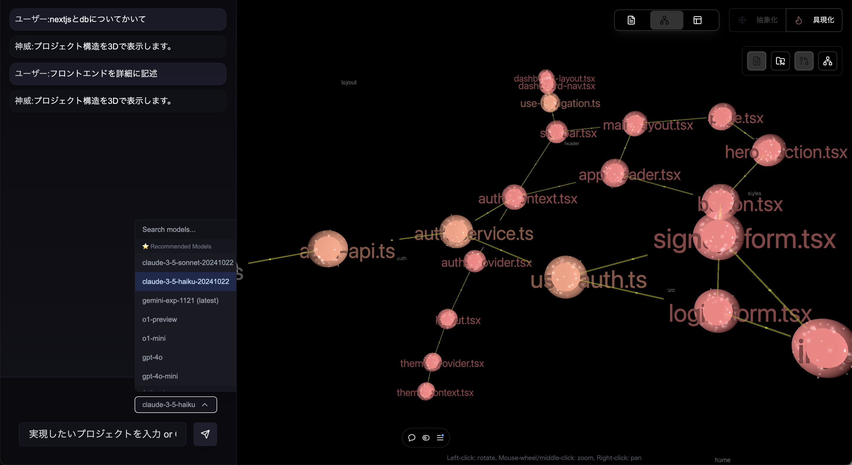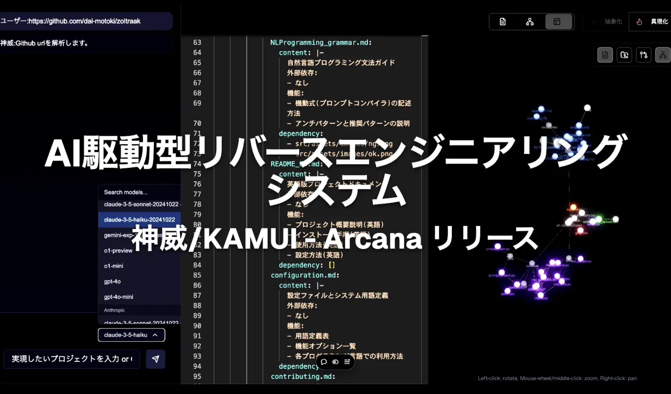 システム生成・依存関係可視化・マルチAIエージェントなど多機能なAGI基盤プロダクト