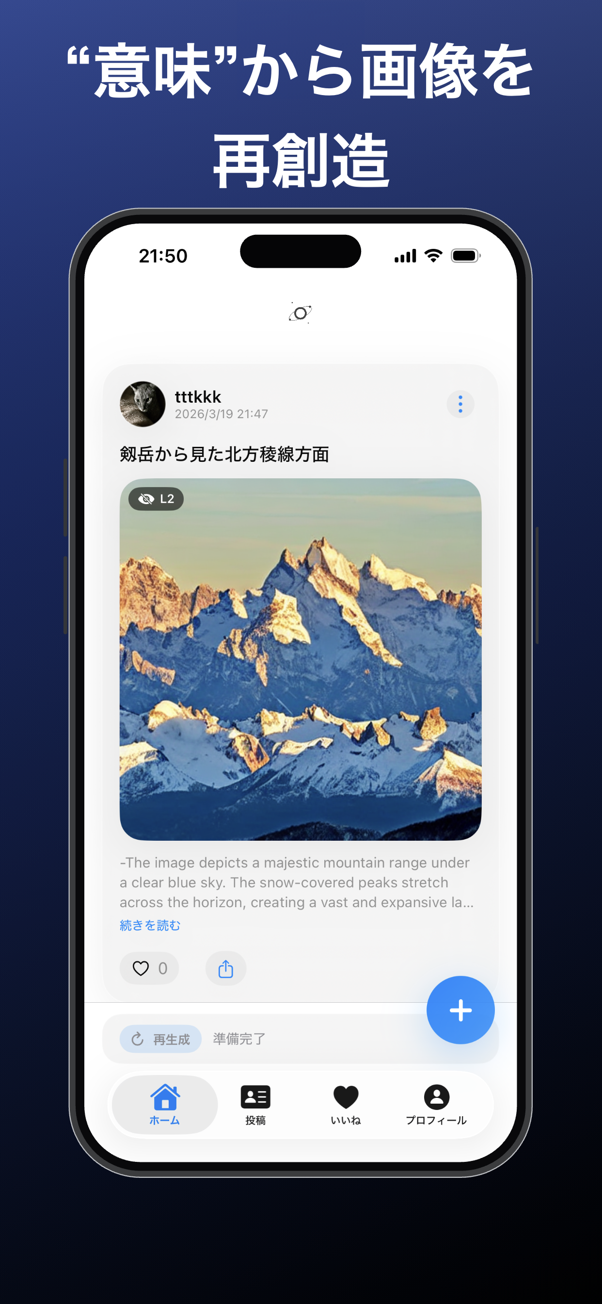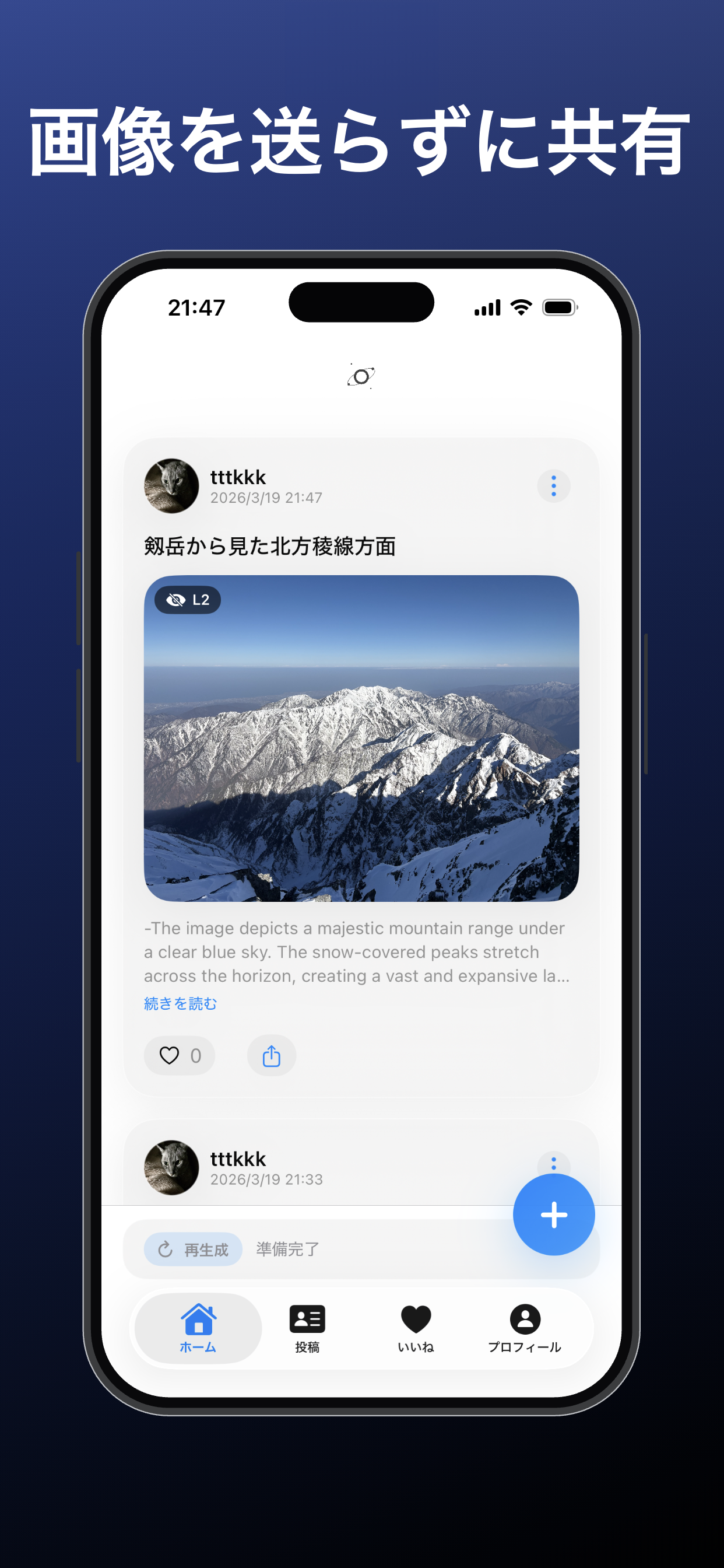 Mim は、画像をそのまま送らず「意味」を共有する新しいタイプのセマンティック通言SNSです。 AIが画像を解析して意味表現(caption / prompt / tags) に変換し、受け取った端末側で画像を再構成します。 プライバシーとデータ最小化を重視した、新しい情報共有の形を目指しています。