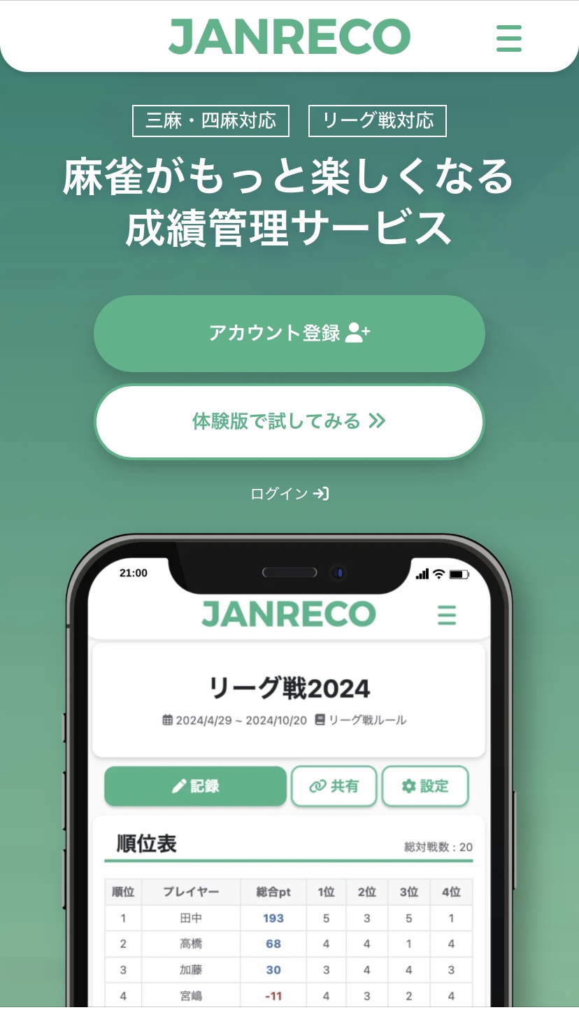 あなたの麻雀がもっと楽しくなる成績管理サービス