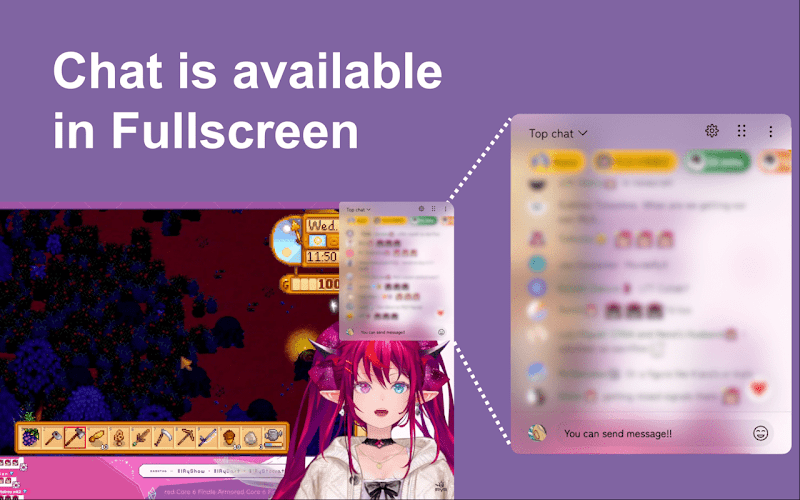 この拡張機能はYouTubeライブのフルスクリーンモードでチャットを使用できるようにします この拡張機能により、フルスクリーン時にYoutube Liveでチャットを使用できるようになります 機能 ・フルスクリーンでもチャットを送信できます ・チャットのUIをカスタマイズすることもできます