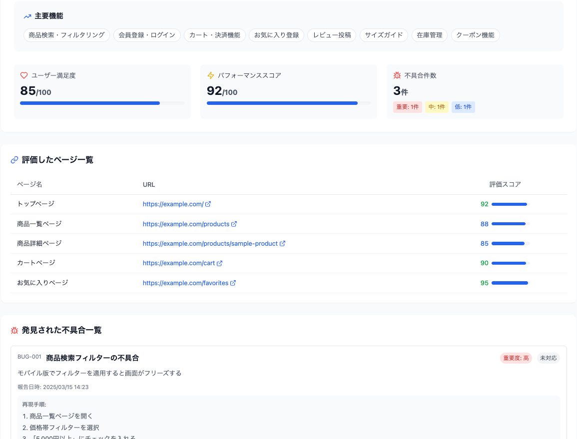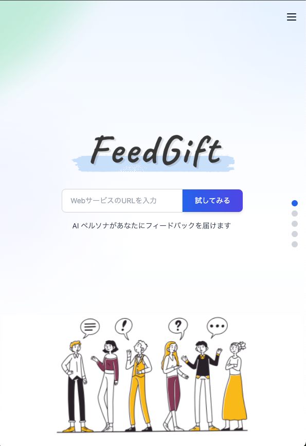 最初はURL連携だけで OK AI ペルソナが毎日 Web サービスを利用してフィードバックを届けます。 オプションを有効にすると、サイト訪問だけではなく、本当のユーザーのようにログインし、登録、編集などの機能も利用してフィードバックします。
