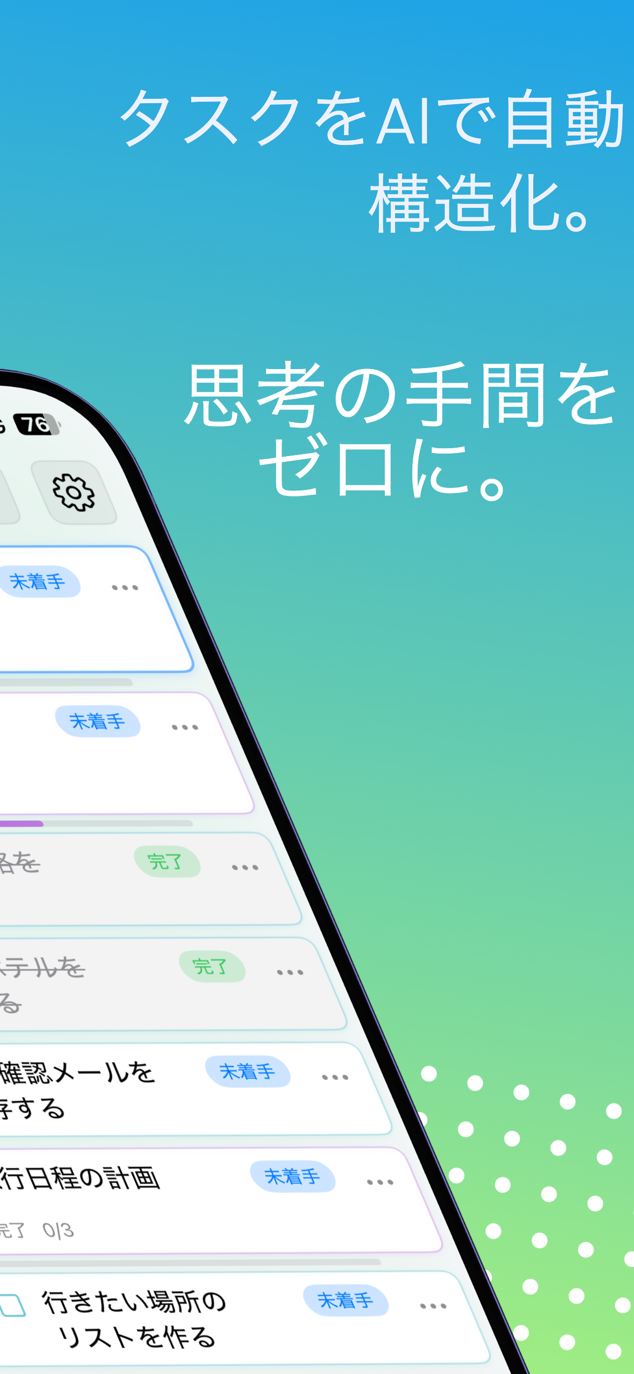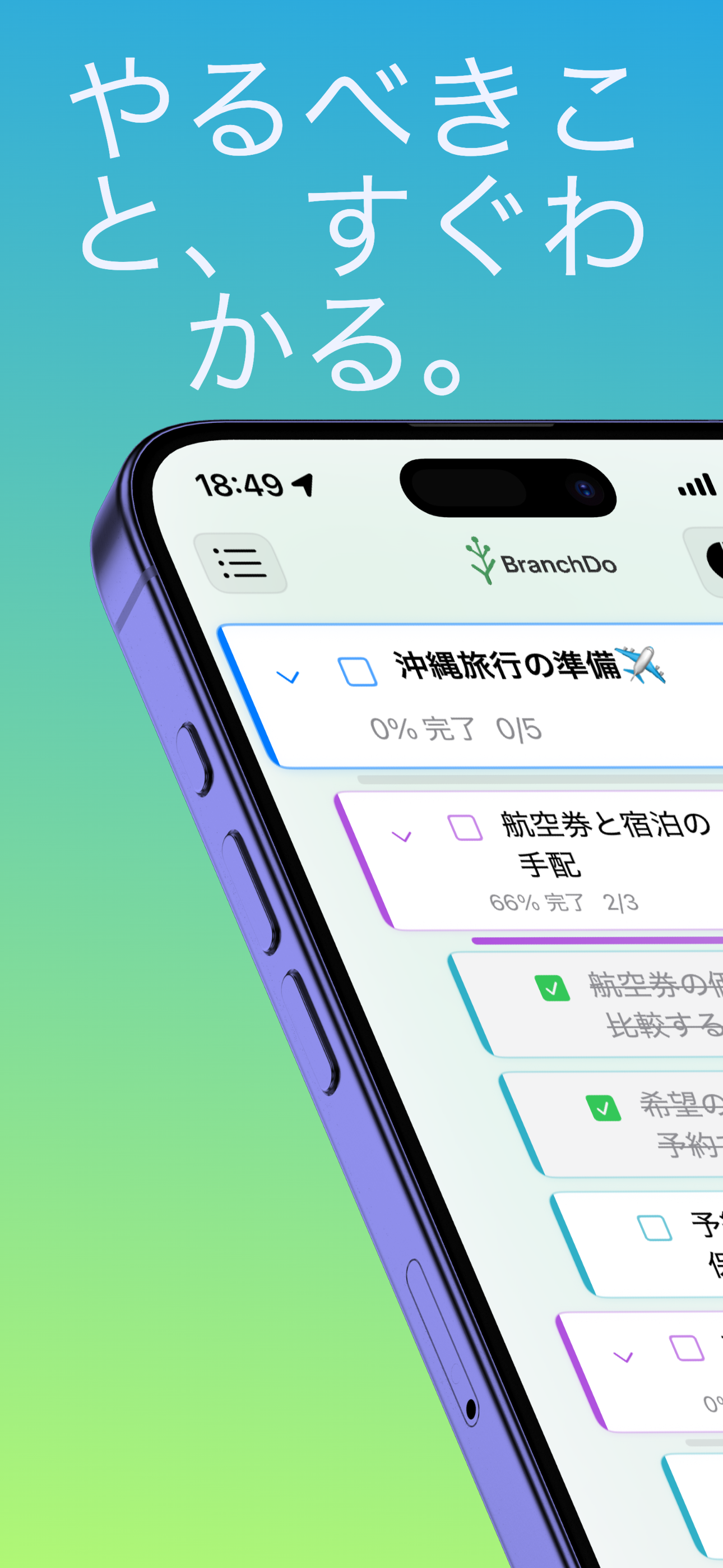 BranchDo – タスクが“枝分かれ”する、新発想のタスク管理アプリ 「やることが多すぎて何から手をつけていいか分からない…」 そんなあなたの悩みを、AIがスッキリ整理! BranchDoは、AIがタスクを自動で分解して、見える化してくれる階層型タスク管理アプリ。複雑なプロジェクトも、小さなタスクに枝分かれしてくれるから、無理なく進められます。 BranchDoができること 1. AIがタスクを自動で分解 使用例: 「自由研究を進める」→ AIが自動で分解 ・テーマを決める ・必要な道具をそろえる ・調査・実験する ・結果をまとめて発表資料を作成 あなたは大まかな目標を入力するだけ。AIがやるべきステップを整理してくれます。 2. タスクを「木の枝」のように階層で管理 使用例: 【親タスク】「文化祭の準備」 ├─【サブタスク】「出し物の内容を決める」 └─【サブタスク】「買い出しリストを作る」 └─【孫タスク】「予算内で品目を選定」 最大2階層の構造だから、全体の流れも細かい作業もバランスよく把握できます。 3. 期限と連携したスマート通知 使用例: 明日提出の「レポート作成タスク」を忘れそうだったけど、 BranchDoが前日に通知してくれてセーフ! カレンダーとも自動で連携。やるべきことを見逃さずサポートします。 4. AIは無料でも試せる! 無料プラン:AIサブタスク生成が5回まで使える Proプラン(月額):無制限にAI生成を利用可能! その他の魅力 日本語・英語対応(自動切り替え) アニメーション&触覚フィードバックで直感的 CoreDataでローカル保存、セキュリティも安心 SwiftUI + MVVM構造で高速・安定動作 BranchDoはこんな人におすすめ! 受験・研究・プロジェクト管理などでやることが多い人 タスクを視覚的に整理したい人 AIの力で効率化したい人 シンプルでおしゃれなタスク管理アプリを探している人