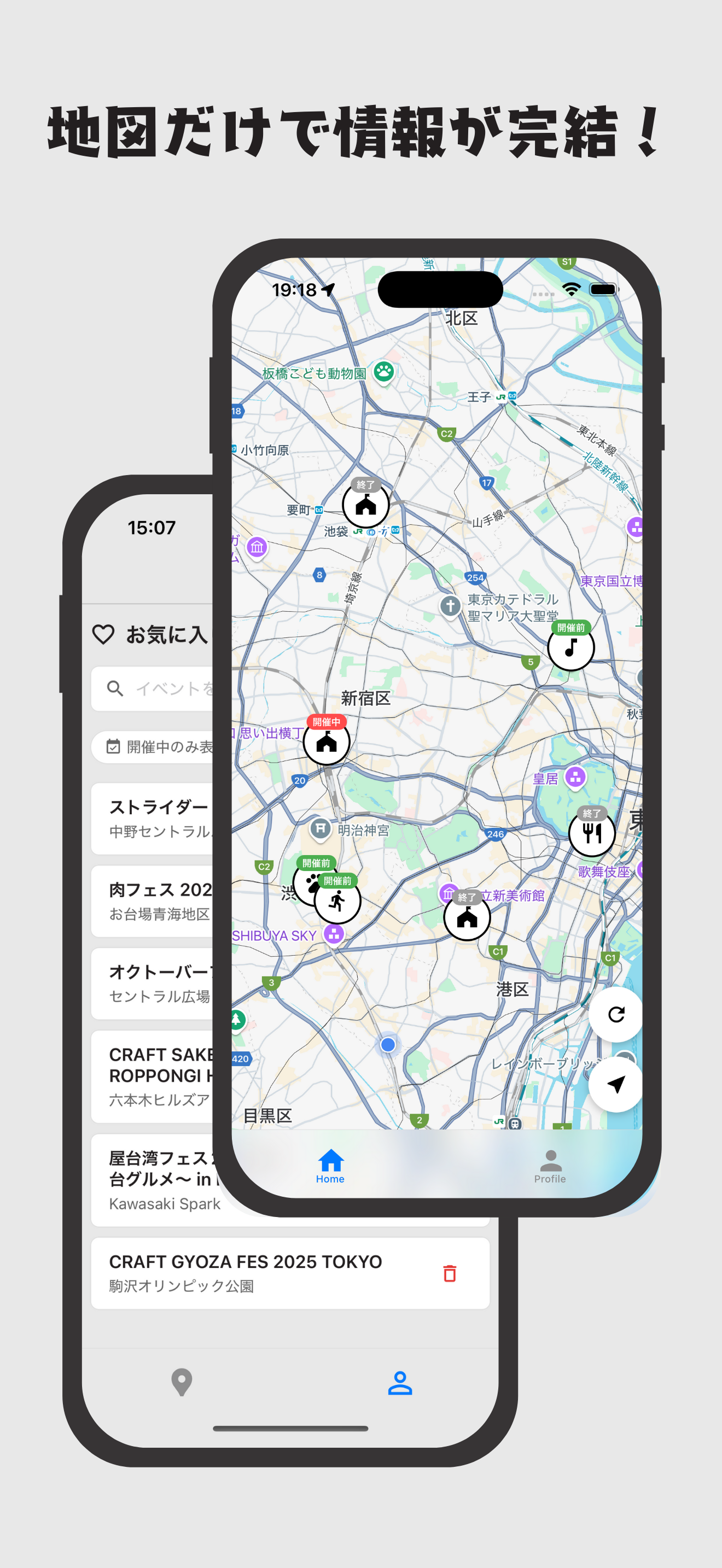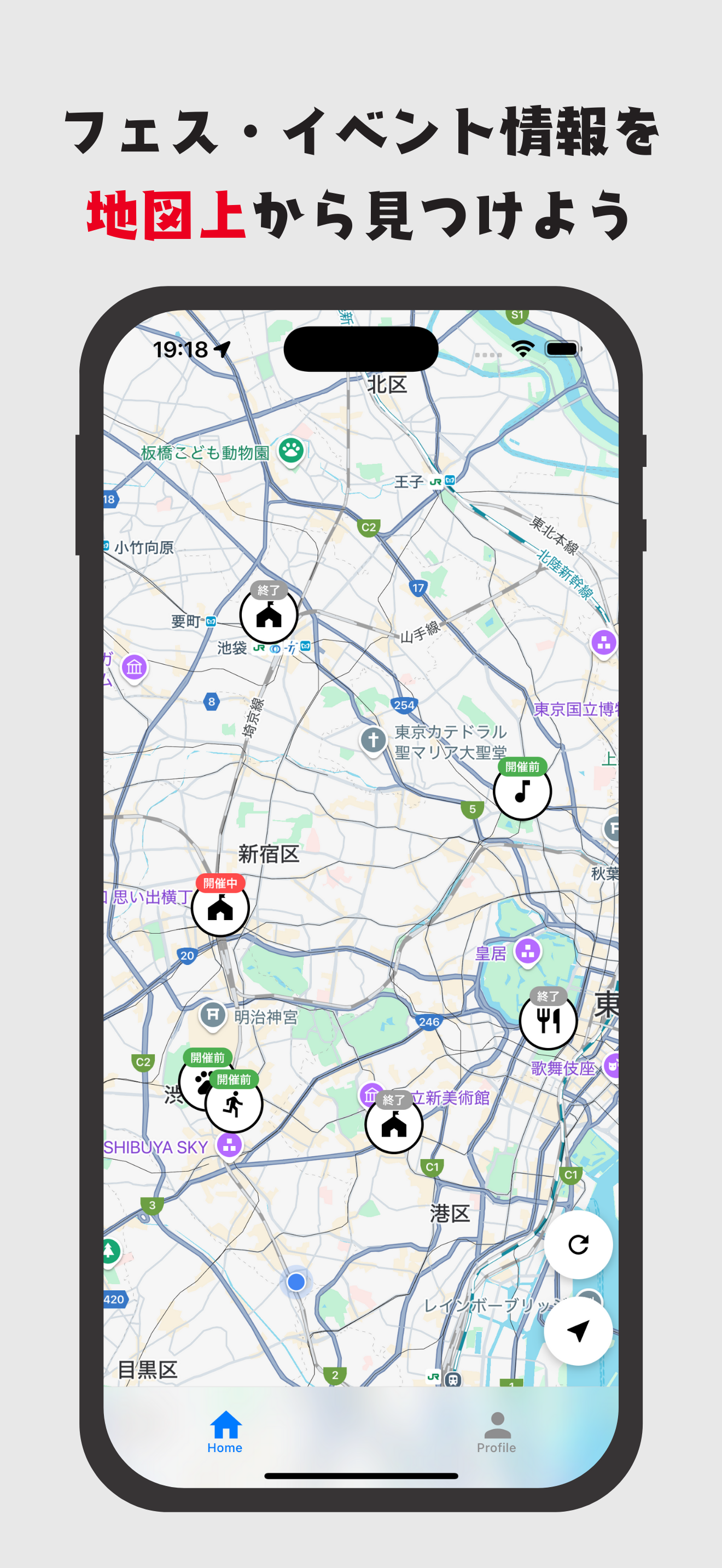 「フェス・イベント情報がすぐに見つかる!!」 evetownは都内を中心に公園などで開催されているフェス・イベント情報などを地図上で発見できるアプリです! ◆こんな方におすすめです! ・週末はどこかに出かけたいけど、きっかけがないので見つけたい! ・フェスやイベント情報を手軽に簡単に見つけたい! ・もうイベントを見逃したくない! evetownでは地図上にわかりやすいアイコンでジャンルを問わずイベント情報を掲載しているので、自分に合ったイベントはもちろん、新たに知るきっかけとなる機会を誰でも簡単に発見することができます。 また、気になったイベントをワンタップで簡単にお気に入り保存は可能。保存したお気に入りイベントはプロフィールから一覧で確認できます! evetownを利用することで、お出かけのきっかけを見つけることができ、もう、「行きたかったイベントが終わってた」と悩むことはありません。 あなたのお出かけライフを、より便利によりスムーズにアップデートしましょう!