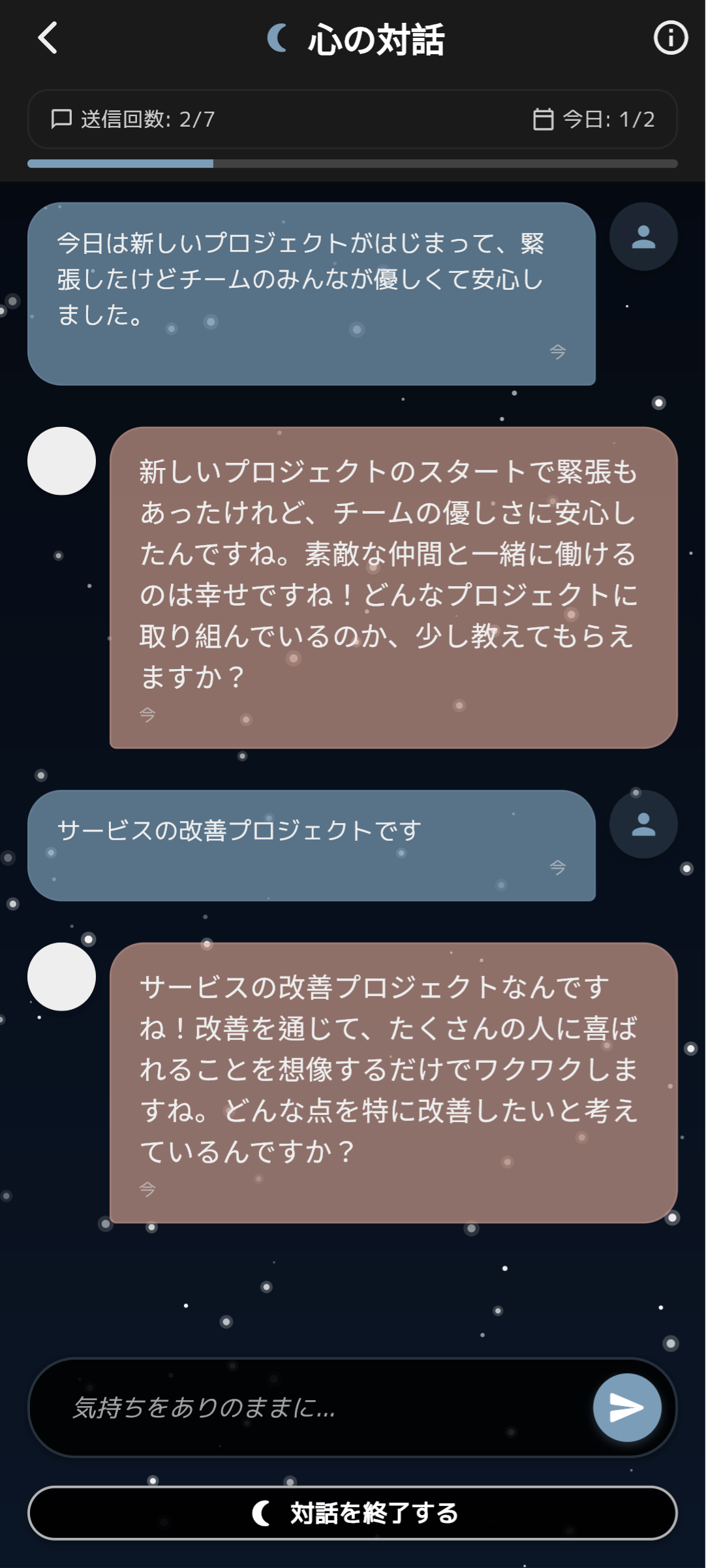 「ねむる」は、毎日の気分や振り返りを記録しながら、AIキャラクターとの温かい対話を通じて心を整え、質の良い睡眠をサポートするアプリです。