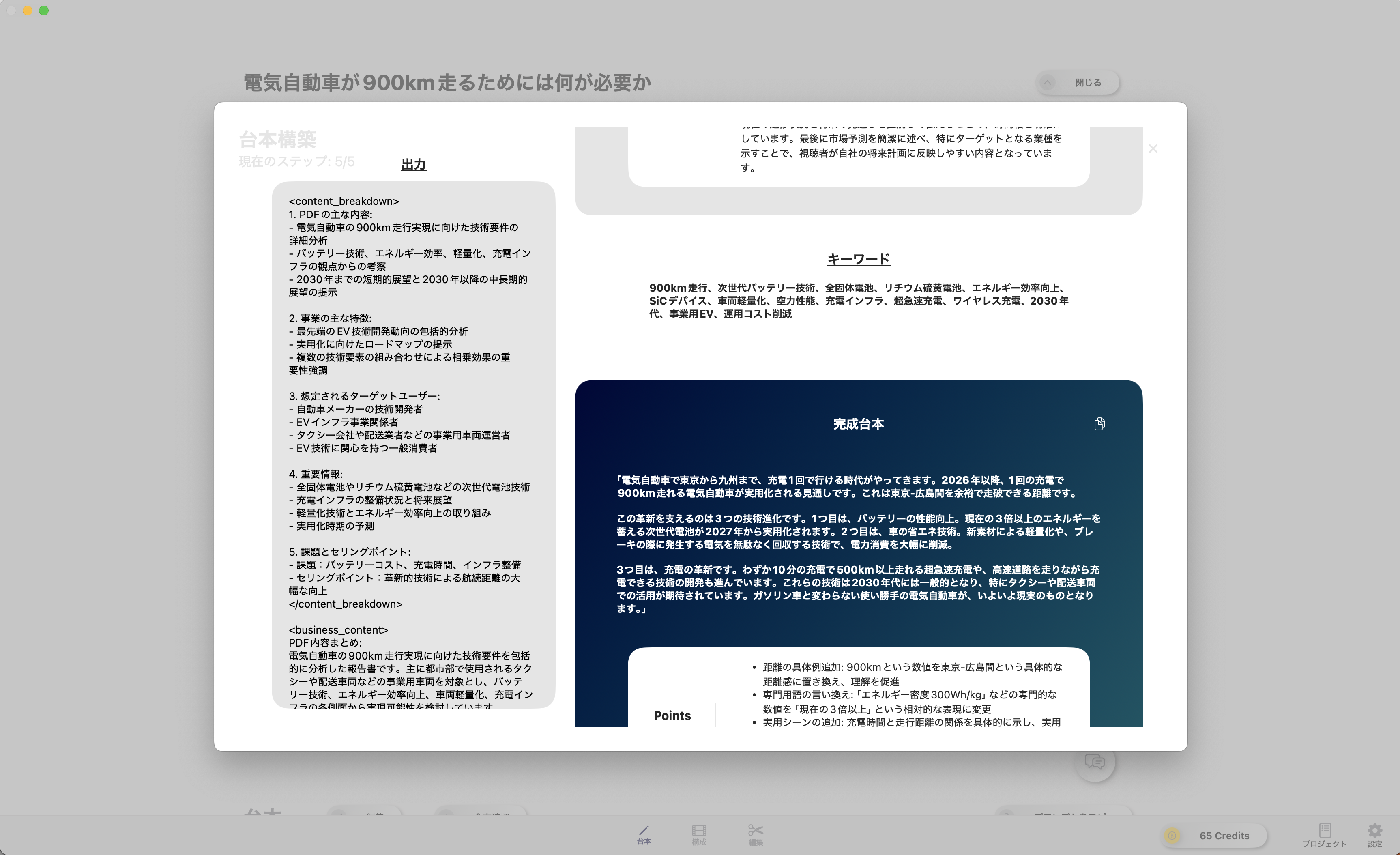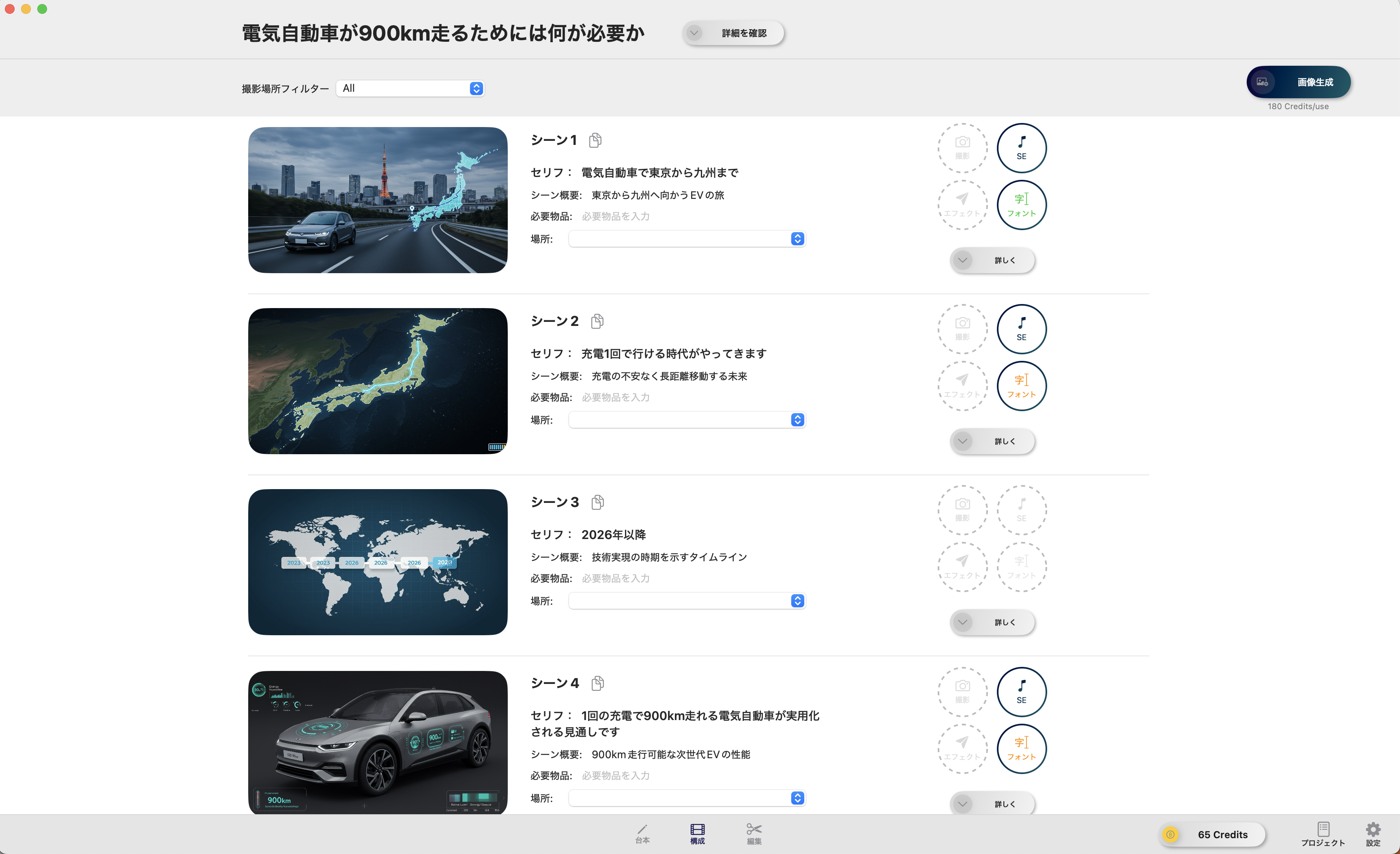 以下のフォームよりご回答いただくことで、ベータ版をご利用いただけます! https://docs.google.com/forms/d/e/1FAIpQLSfwVHhYHfzfYxEcYe_IdI7SJR0bh7CvQHZ0fwQWdVUFV1KXNQ/viewform?usp=header (もし回答が手間な場合はTwitterなど、なんらかの手段でDMいただけると対応可能です。) ※こちらのアプリはベータ版です。 ※アプリの利用上、ご不便をかけることもあります。改善を心がけるのでご了承ください。 【Kantoku AIとは?】 KantokuAIは台本の制作から動画の作成までをサポートするアプリです。台本の制作時、動画のシーンの作成時、そして画像作成においてAIを活用してサポートします。作りたい動画が明確にある方にオススメです。半自動で、自分のやりたいようにコントロールしつつ動画を作れるから、作りたい動画が簡単に作れる! 【何ができる?】 台本の作成:アップロードしたPDFに基づいて、内容を分析して台本を自動で提案します。提案された台本から気に入ったものを選んで、修正を行います。 シーンの作成:台本の内容をもとに、AIが動画全体の構成を作り、それに適したシーンを自動で作成。ナレーションも生成することができます。 画像作成:作成したシーンをもとに、シーンに最も適した画像を生成します。 動画出力:作成したシーンをもとに、動画を出力します。 【キャンペーン】 🎊ベータ板の期間はアプリ内の動画作成用通貨をプレゼントします。 🎊メールで初回や、利用レビューなどご連絡いただけると500コインプレゼントいたします。(回数制限あり)