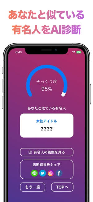 興味のあるジャンルの似ている有名人をAIが診断してくれるアプリ