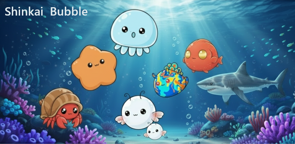 同じ種類の海の仲間を3匹くっつけて消していこう!プカプカ浮いていく、癒やしの深海パズルゲーム。通勤・通学の暇つぶしに最適。レアキャラをコンプリートしよう!