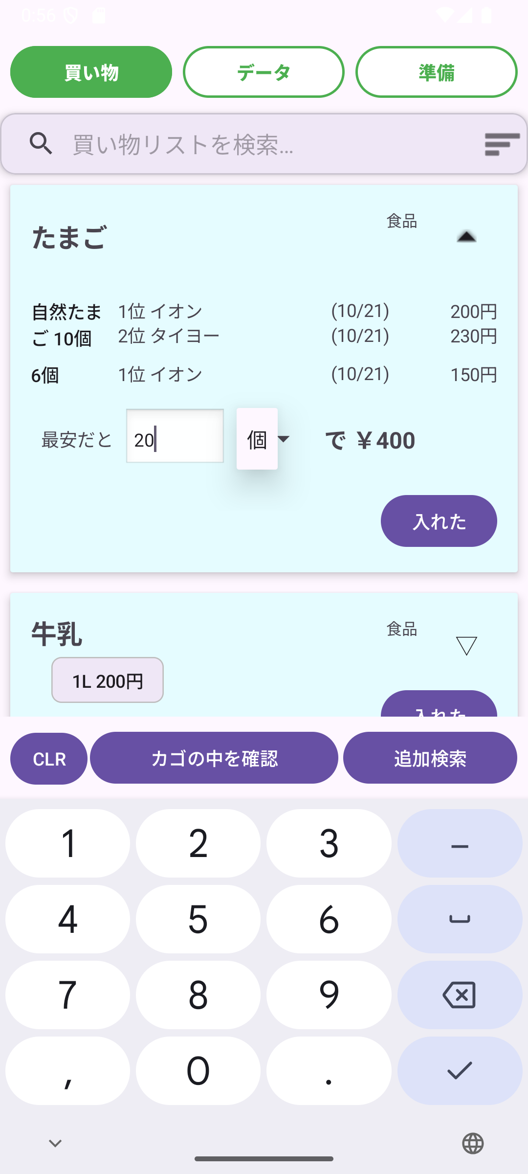 かわいく節約!過去の価格と比較して「今買うべき?」が即座に分かる、癒しの買い物メモ帳アプリ。