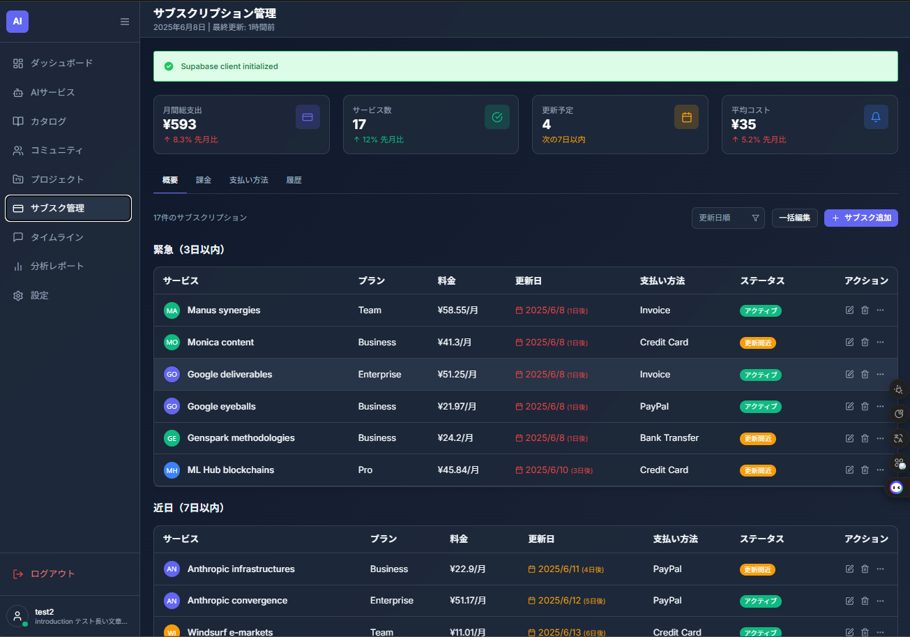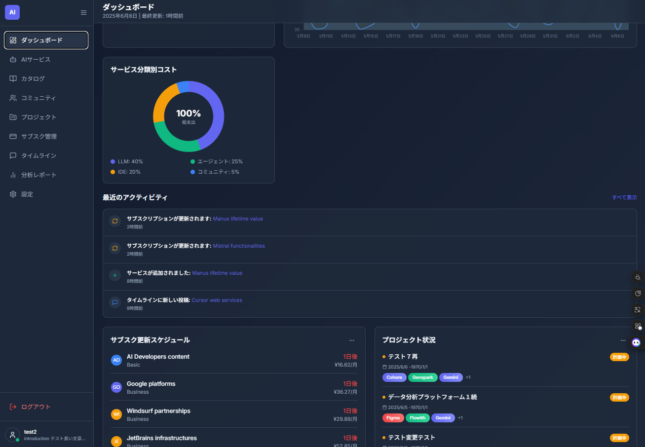 AI Dev Hub は、個人開発者が利用する LLM・AI エージェント・IDE・コミュニティなど多数の AI サービスを横断的かつ戦略的に活用するための統合ハブです。利用状況・コスト・ROI を一元的に把握し、プロジェクト/コミュニティ間で最適なツール組み合わせを共有することで、「AI 駆動個人開発」を加速させることを目指します。