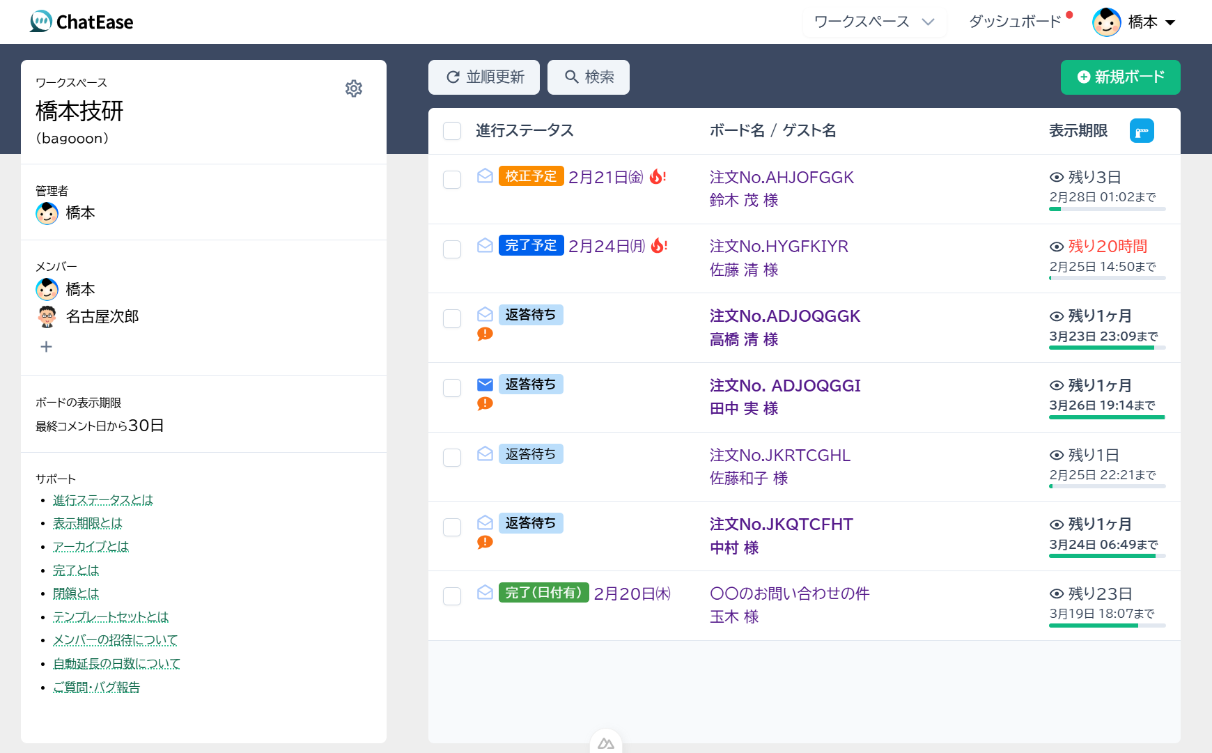 顧客はアカウント登録不要。並行する案件も一瞬で把握できる楽々チャットシステム