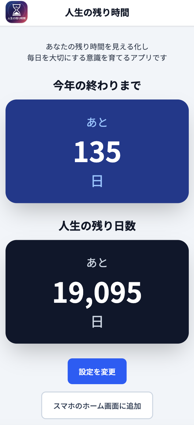 あなたの残り時間を見える化し、毎日を大切にする意識を育てるアプリ