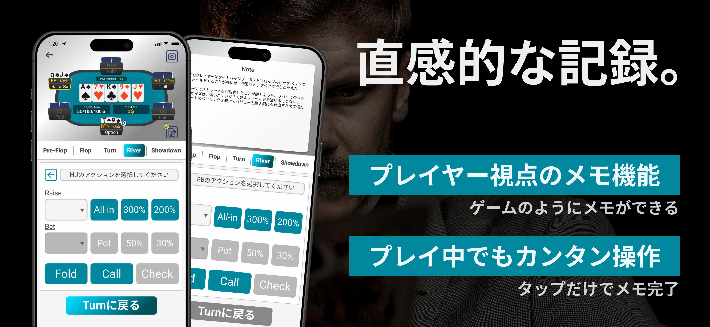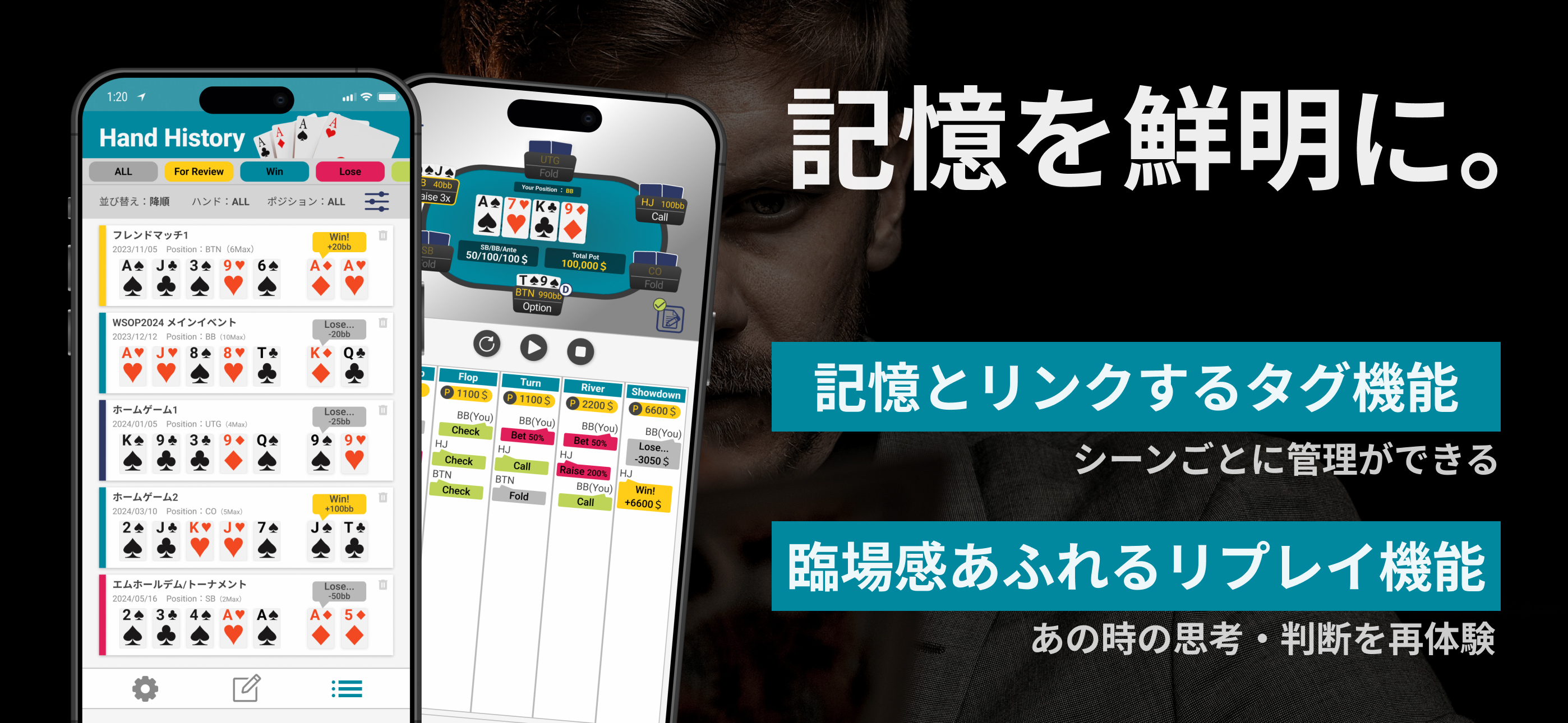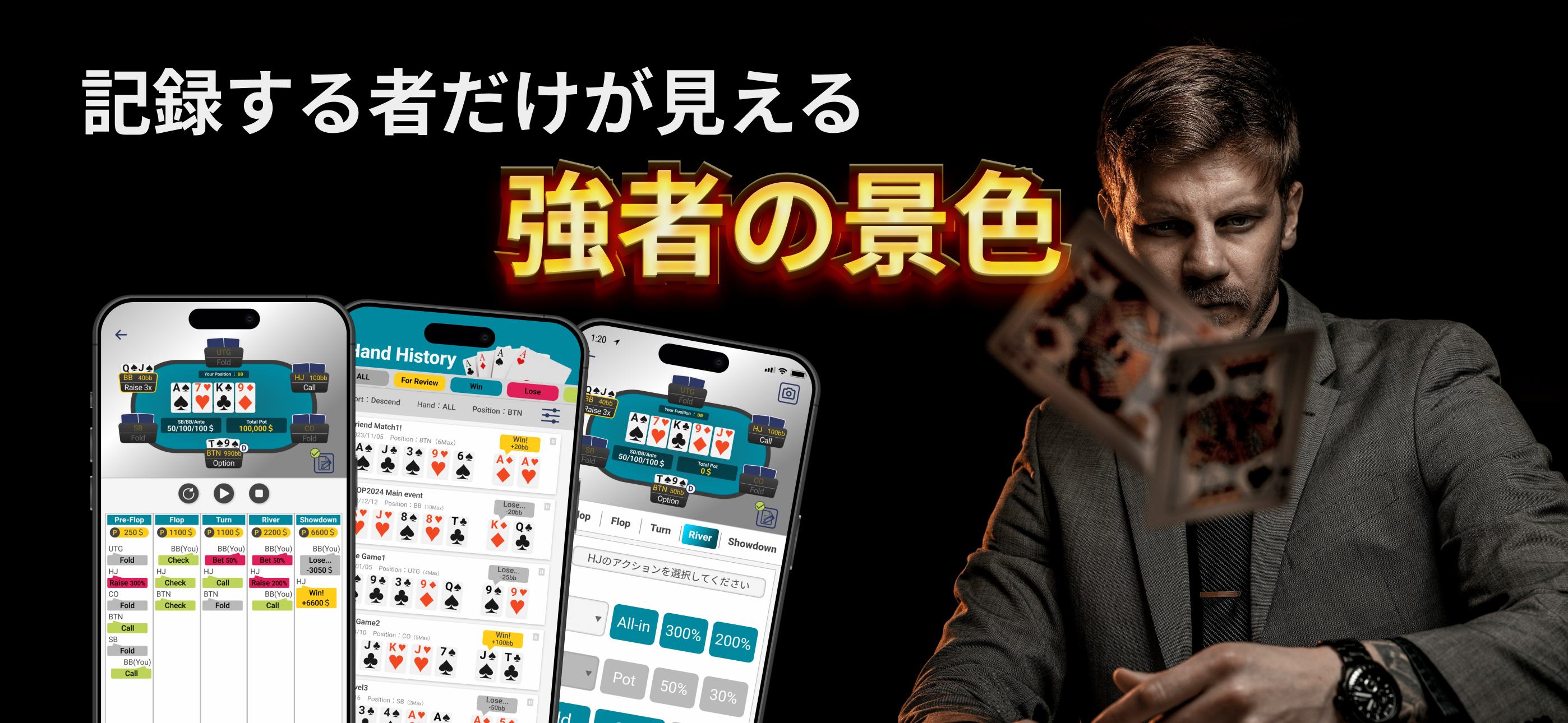 ゲームでは当然のようにプレイ記録が自動でされます。一方、リアルポーカーにおいて、自分のプレイを記録する手段はほとんどありません。ポーカーはプレイの記録と振り返りで戦略の最適化を図るゲームです。このアプリは悩めるポーカープレイヤーのために制作しました。