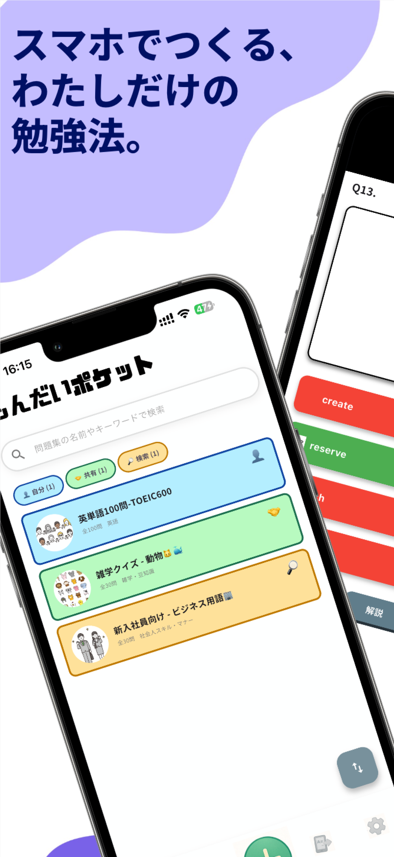 問題を作って共有できる!暗記や単語帳にぴったり!学習アプリ