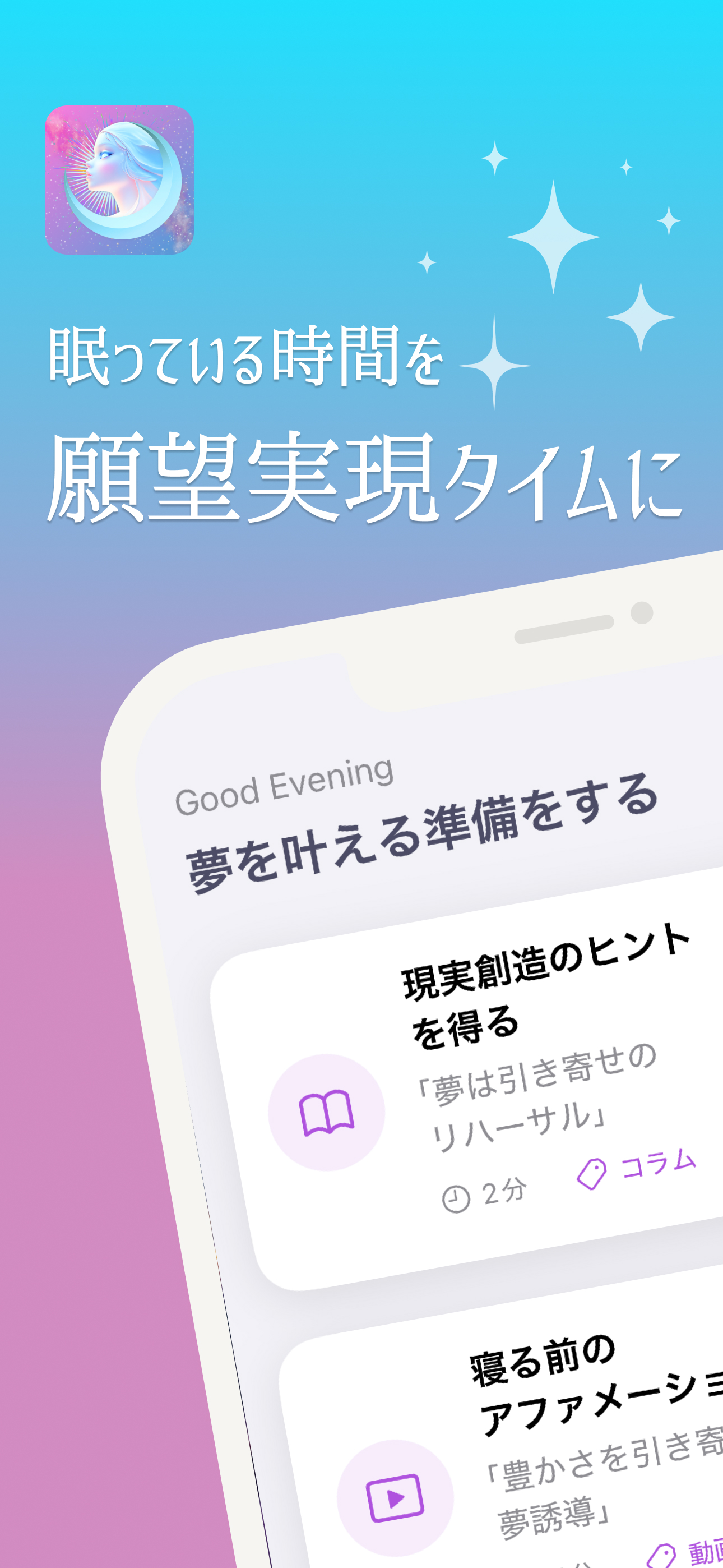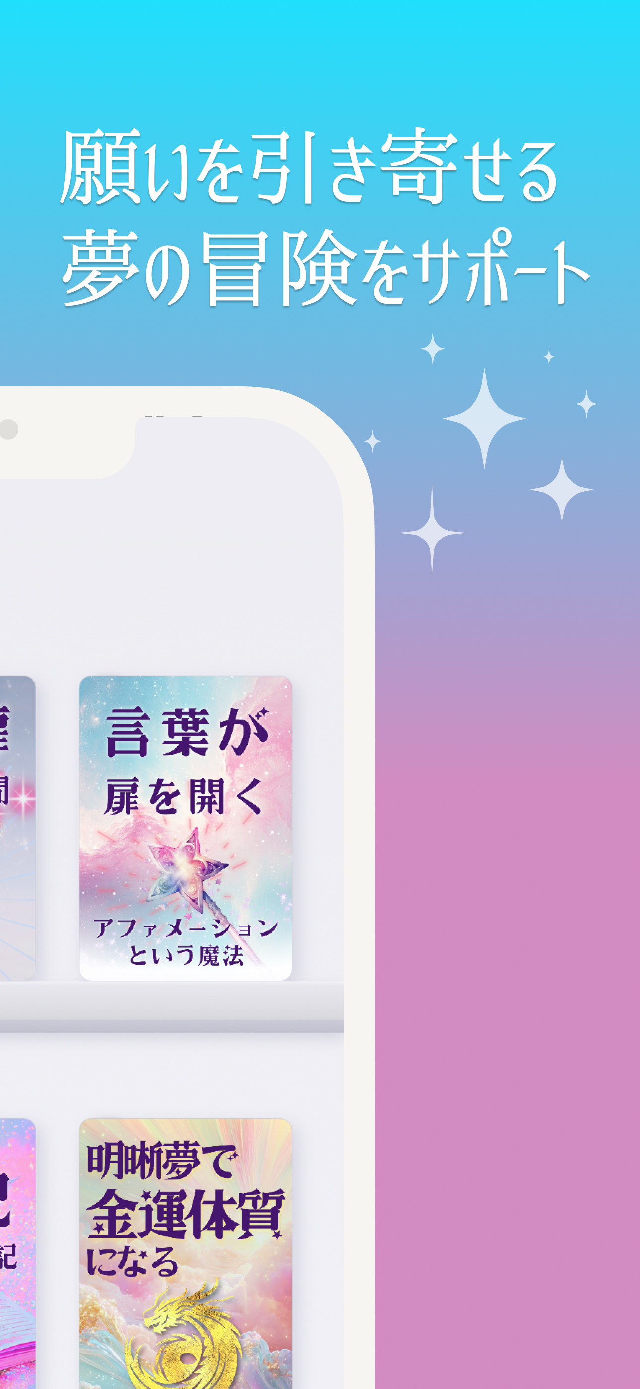 眠っている時間を願いを叶える時間に変える そんな魔法のような方法があったら、あなたは試してみたくありませんか? 私たちは眠っている間にも潜在意識は働き続けています。 その潜在意識の力を最大限に引き出し、睡眠導入・夢日記・夢診断・願いを叶えるヒントで、明晰夢という特別な夢体験を通じて、願望実現をサポートするのがこのアプリです。 ドリームマジックは、「明晰夢」を通じて願望実現をサポートする実践型アプリです。 眠っている間に“夢の力”を活用し、引き寄せ・現実創造・自己成長を促進。 夢日記・夢診断・誘導瞑想など、多彩な機能で夢と現実をつなげていきます。 ◆ 主な機能 ▶ 願望を叶える夢誘導音声 就寝前に心と体を整える睡眠導入音声。 アファメーション・誘導瞑想・ヒーリング周波数で深いリラックスを促し、夢の中での自己対話とビジョンの具現化をサポートします。 ▶ 夢日記&夢診断 毎日の夢を記録し、心理学とスピリチュアルの両面から解釈。 夢に現れるシンボルの意味や心の状態を読み解きます。 モーニングルーティン化しやすく設計されています。 ▶ 引き寄せ&現実創造コラム 夢は「引き寄せのリハーサル」。 明晰夢を活用し、成功・愛・使命・豊かさとつながるヒントをお届けします。 ◆ こんな方におすすめ ・寝つきが悪い 眠りが浅い 寝る前にスマホを見がち ・願いを叶えるヒントが欲しい ・引き寄せ・潜在意識・スピリチュアルに関心がある ・不思議な夢の意味を知りたい ・睡眠前・起床後のルーティンを整えたい ・自己肯定感・直感・創造力を高めたい ・明晰夢を体験してみたい ◆ 対応するテーマ例 ・睡眠導入・リラックス・瞑想・呼吸・マインドフルネス ・自己肯定感・才能開花・内面の成長 ・愛・パートナーシップ・良縁・復縁・夫婦関係 ・キャリア・使命・金運・事業の発展 ・高次元との対話・チャネリング・スピリットガイド ◆ 睡眠×音×夢 〜眠りの質を整え、理想の夢へと導く〜 「なかなか寝つけない」「寝ても浅い」「夢を覚えていない」 そんな悩みを抱える方にこそ、音の周波数が効果的です。 ドリームマジックでは、以下のような“ヒーリング周波数”を用いた睡眠導入音を収録。 心身をやさしく鎮め、自然に眠れる状態をつくります。 ・528Hz - DNA修復・愛と安心感の波動 ・432Hz - 宇宙の調和・深いリラックス ・417Hz - トラウマや不安の浄化・心の解放 これらの音を流しながら寝ることで、脳波が整い、寝つきが良くなり、夢を覚えやすくなる効果が期待できます。 ◆ ドリームマジックとは? 夢は、潜在意識からのメッセージであり、未来のビジョンにアクセスするポータルです。 ドリームマジックは、直感と現実的な習慣(睡眠・音・記録)を融合し、夢を使って人生を変える力を引き出します。 眠りにつくその瞬間から、あなたの「願い」は静かに動き出します。
