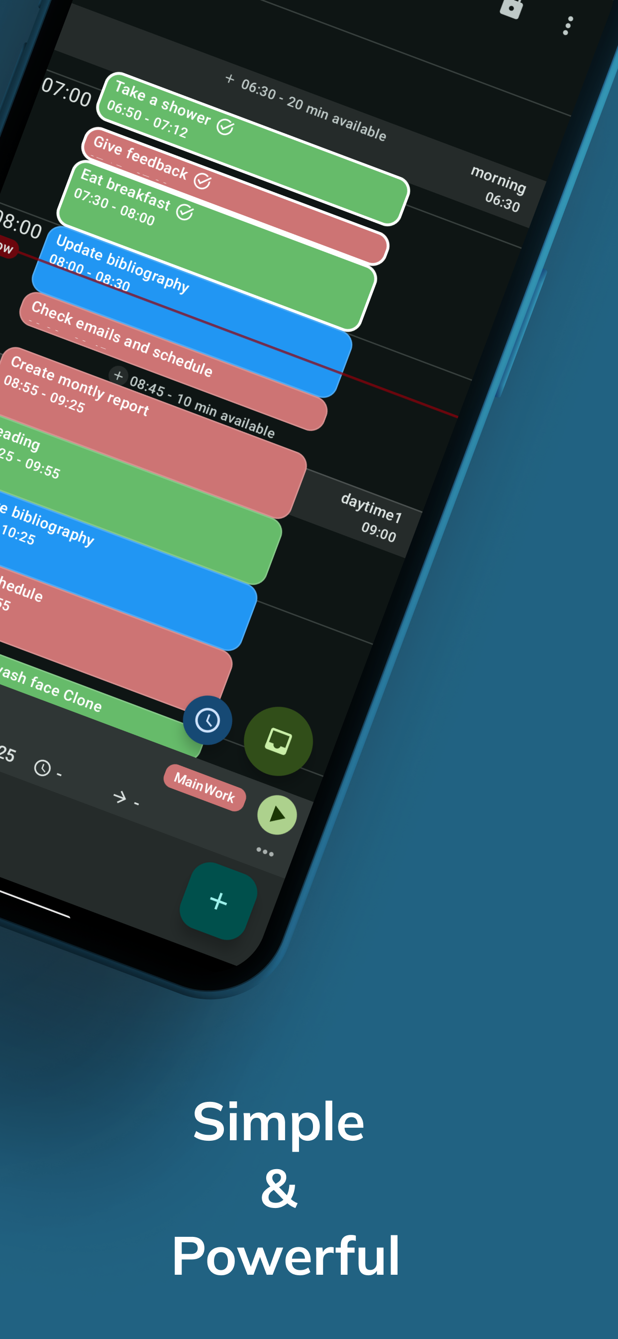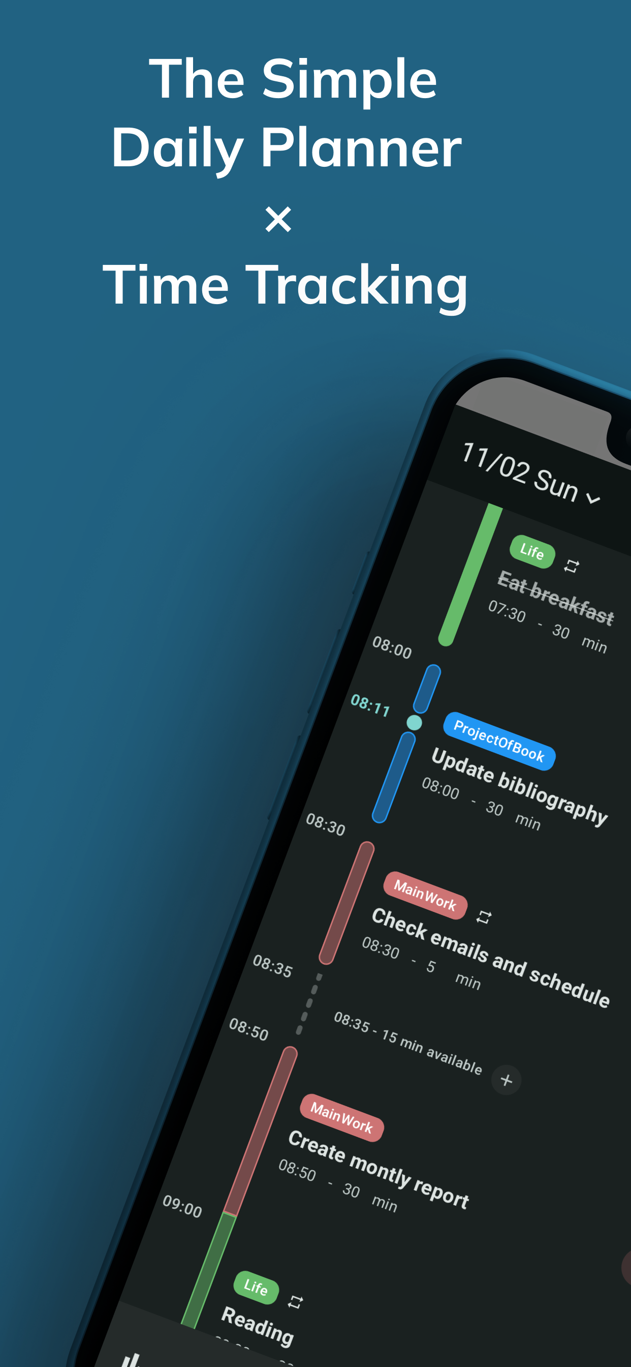 一日をタイムラインで計画&記録、タイムボクシング・タイムブロッキングにもピッタリです。