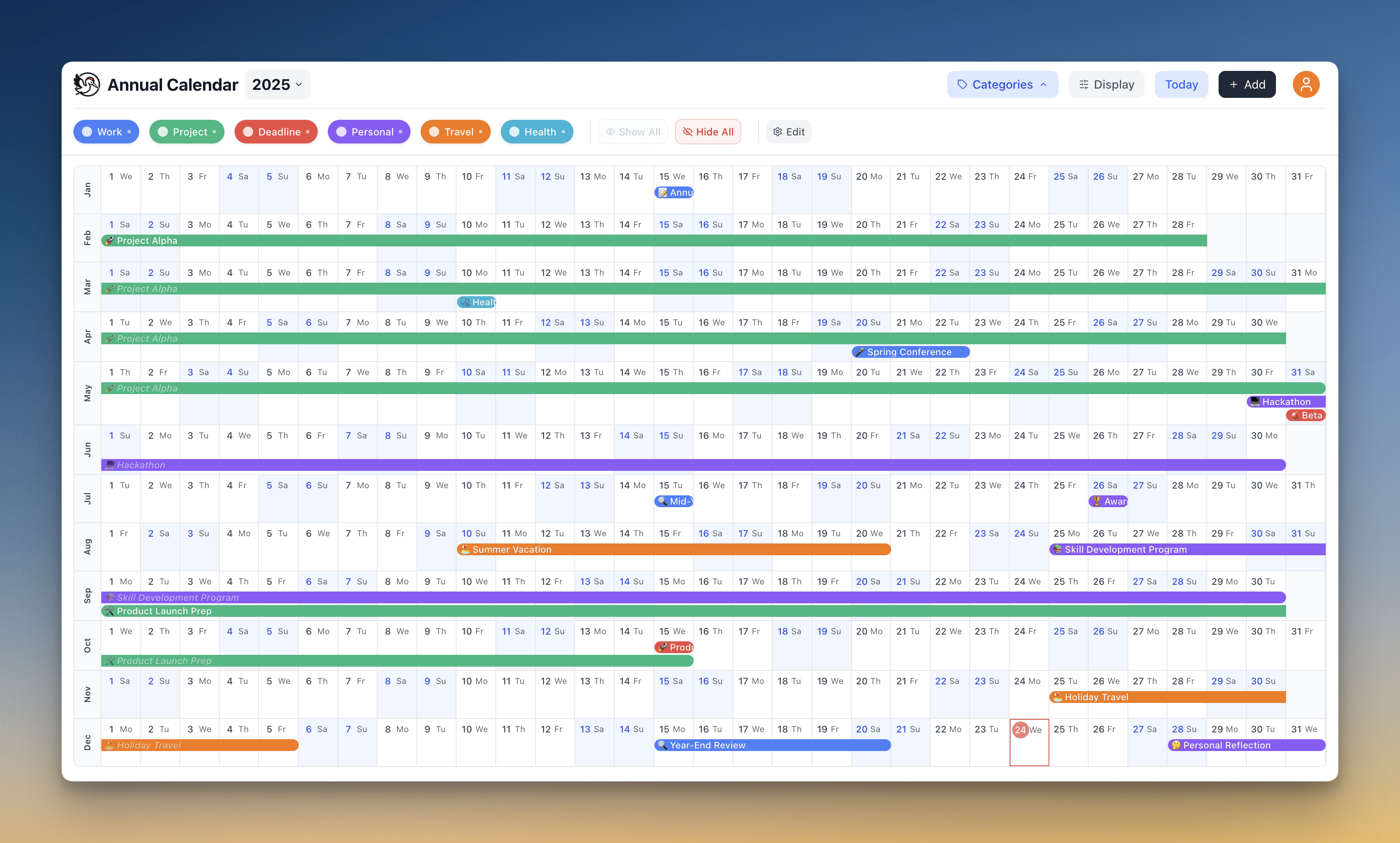 一年間を俯瞰し、人生やプロジェクトの全体像を一望できるデジタル年間カレンダーサービス