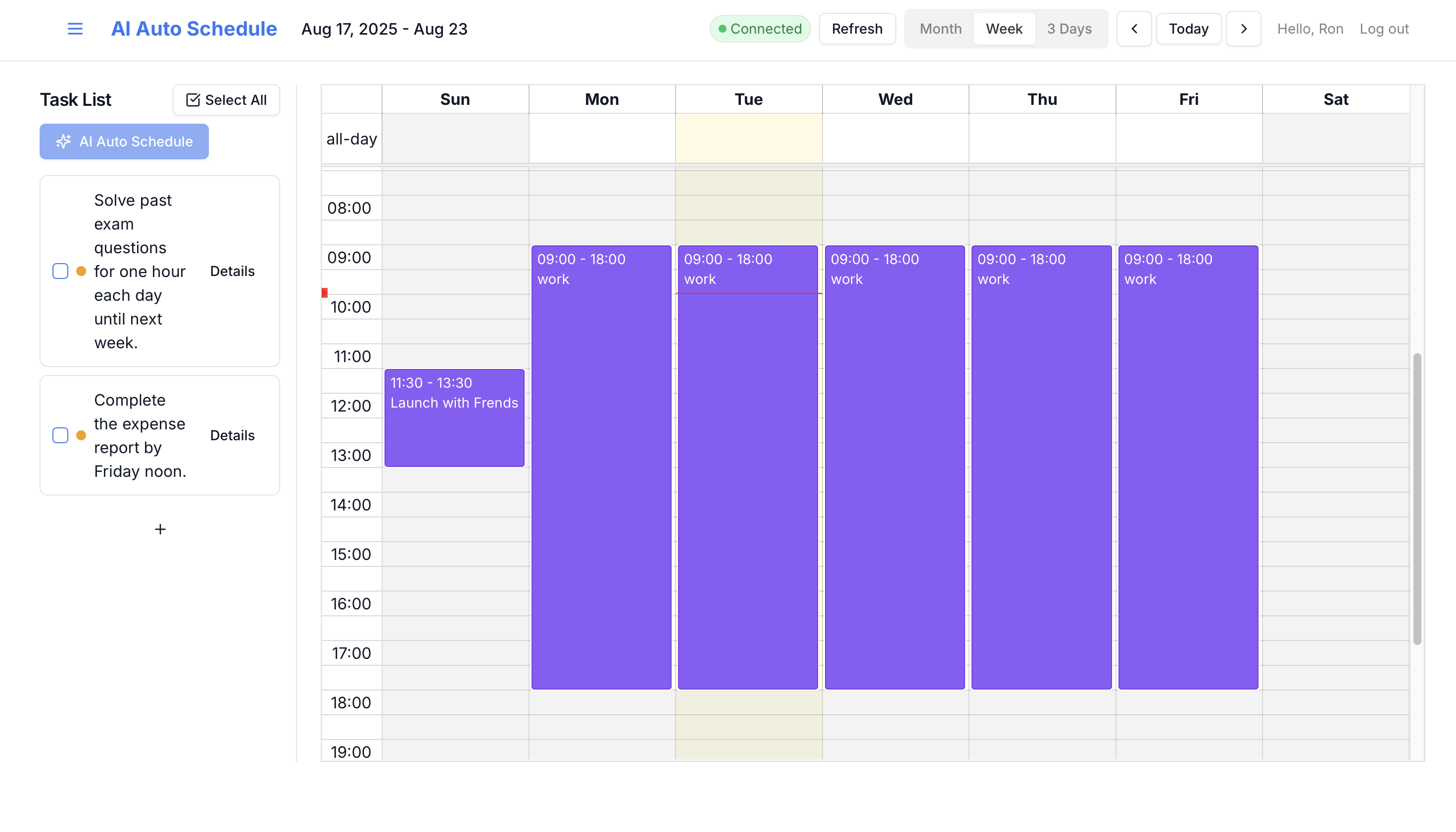 To Do Listが消化できない!やろうと思っていたタスクを忘れていた! なんて経験ありませんか? そんな方のためにAIがあなたの秘書のようにカレンダーの予定や傾向を汲み取り、To Do Listの予定を適切な時間帯にイベントを配置してくれます。 これでTo Do Listがずっと残っていたり、やるべきタスクを忘れず、カレンダーを見れば、次にやるべきことが書いてあります。 秘書やマネージャーのようですよね! 外部カレンダーとも連携しており、現在はGoogleカレンダーと同期できます。Googleカレンダーの予定も把握して予定を作成してくれます。 現在はお試し期間として、完全無料でリリースしています。