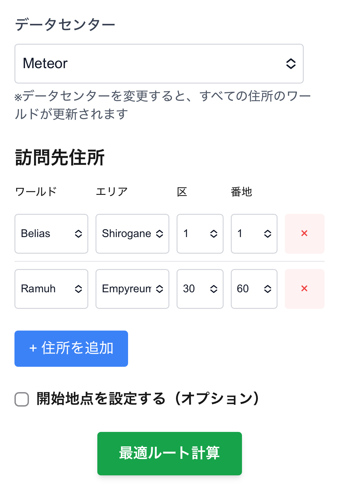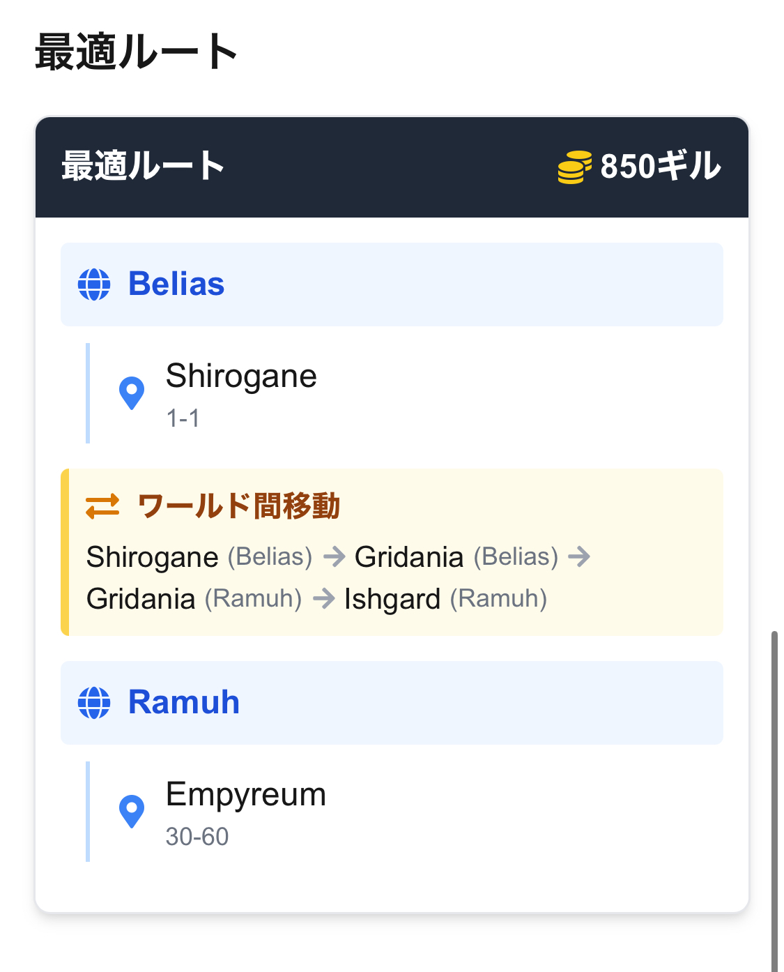 FINAL FANTASY XIV (FF14)のハウジング見学を助けるツールです。 複数の作品を見学する際に、どのように移動すれば"楽に"、"安く"回れるかがわかります。
