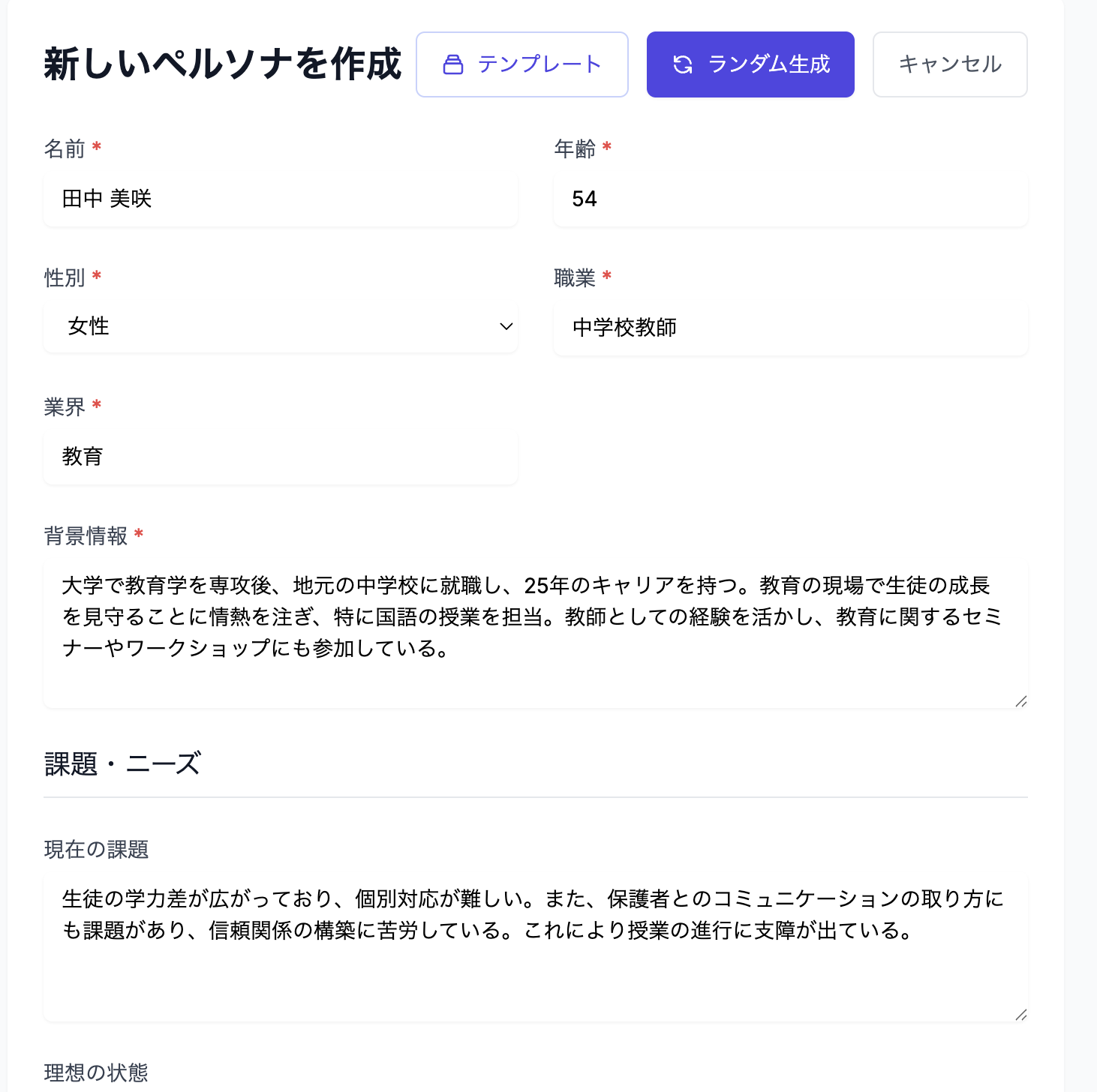 PersonaMateは、新規事業開発における仮説検証をAIで高速化・高品質化するツールです。ユーザーが任意でペルソナを作成し、AIがチャット形式でインタビューを実施。様々な業界のペルソナと対話することで、顧客理解とインサイトを得て、新規事業仮説検証の高速化と改善を目指します。限られたリソースで顧客理解を深め、データ駆動型の意思決定を実現します。