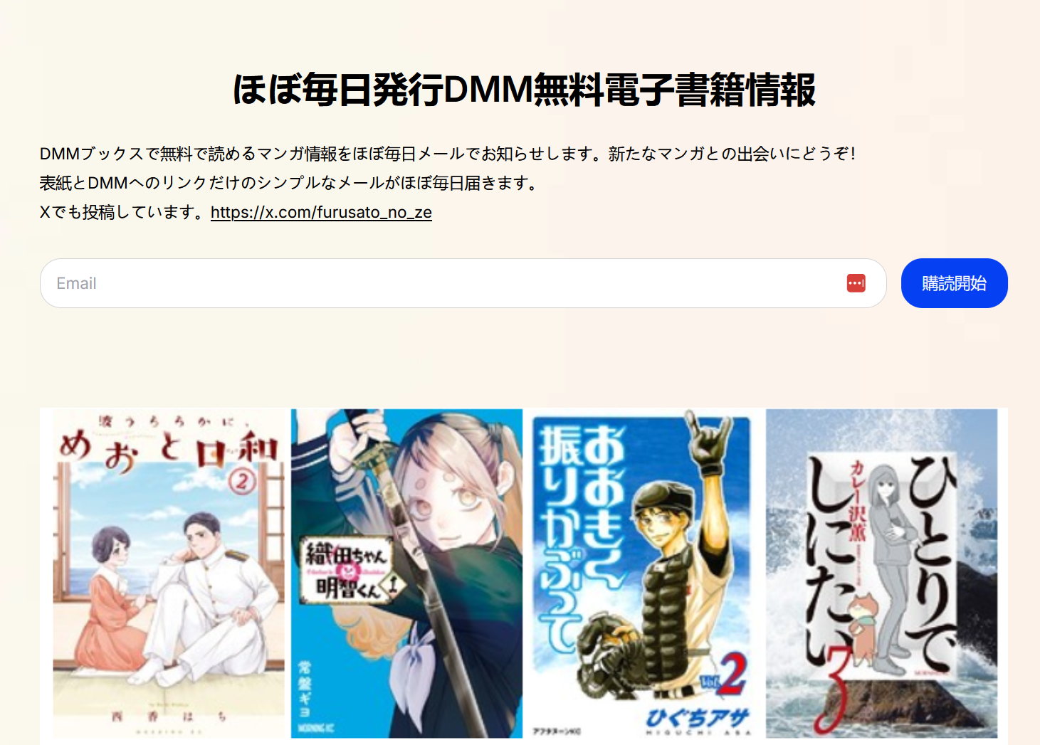 楽天KoboとDMMブックスで無料で読めるマンガ情報をほぼ毎日メールでお知らせします。新たなマンガとの出会いにどうぞ!
