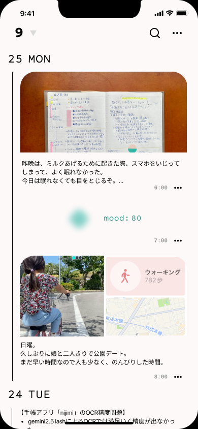 散らばる紙のノートや手帳📔 文字認識(OCR)で取り込んでアプリで検索可能に。 アプリからテキスト入力で書くこともできるので、急なアイデアやメモも一箇所で管理できます。