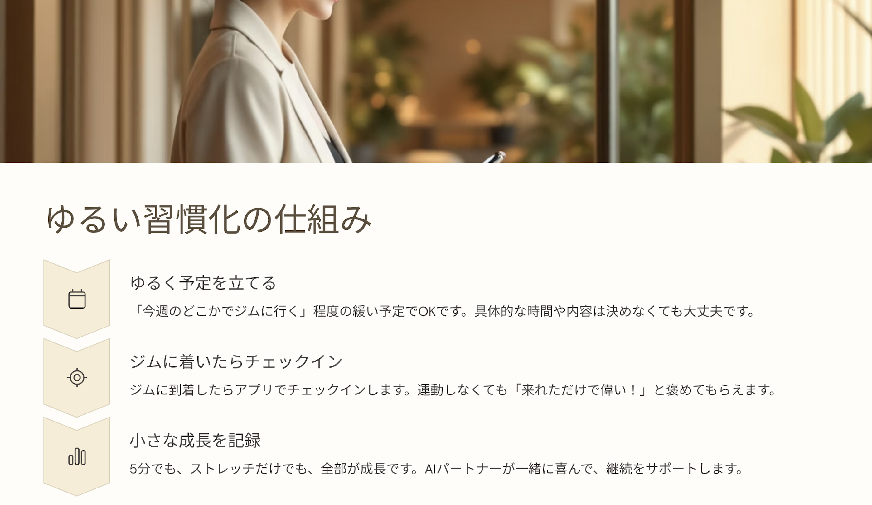 「今度こそ運動を続けたい」 そう思って始めても、完璧にやろうとして疲れて挫折。 そんな経験ありませんか? Mellowyは、完璧主義に疲れた人のための 「世界一ゆるい」フィットネスアプリです。 福岡出身で関西弁も話すユイちゃんか、 爽やかなコーチのリュウさん。 あなた好みのAIパートナーが毎日優しく寄り添い、 「完璧じゃなくていいよ〜」と励ましてくれます。 プレッシャーは一切なし。 ジムでも自宅でも、できる時にできるだけ。 失敗しても「大丈夫大丈夫〜♡」と受け入れてくれるから、罪悪感ゼロ。 ひとりじゃない安心感で、今度こそ習慣化に成功できます。 "Be Mellow, Be You" - ありのままのあなたで、ゆるやかに始めませんか?*