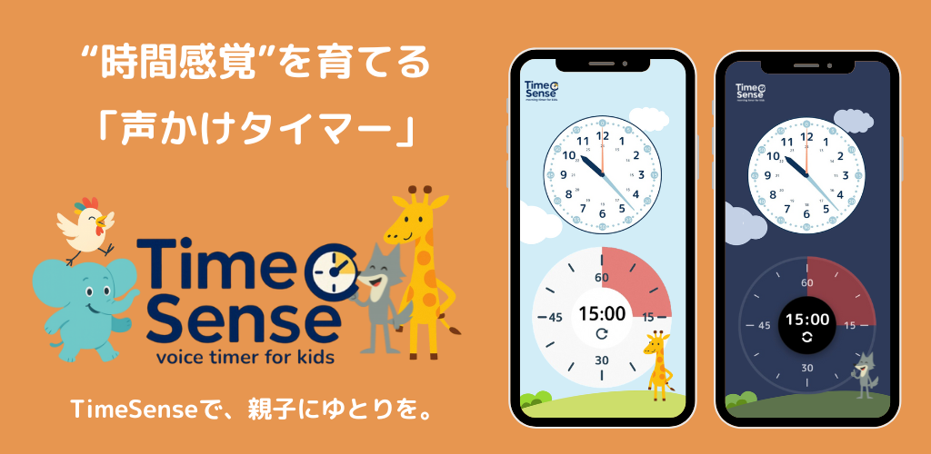 TimeSenseは、アナログ時計とタイマーを同時に表示し、時計が読めない子でもあと何分か」を感覚で理解できる“知育タイマー”アプリです。キャラクターがやさしく声でお知らせすることで、親の「早くして!」の代わりに行動の切り替えをサポート。朝の支度やお出かけ・遊びの切り上げ・宿題など、お子さんとの色んなシーンで使えます。 主な特徴: ✅ アナログ時計×タイマーのW表示で、時間感覚を育成 ✅ キャラクター音声で45分前〜10秒前までやさしくカウントダウン ✅ 多様な性格のキャラ(キリン・オオカミ・ゾウ・ニワトリ)を選択可能 ✅ 英語/日本語切り替え対応で、バイリンガル育児にも対応 ✅ 基本無料。CM視聴 or プレミアム(月額/年額)で追加機能を解放 「あと何分?」がわかると、自分から動ける。 TimeSenseは、忙しい朝や夜のルーティンにちょっとだけ笑顔とゆとりを与えてくれる、“親子のアプリ”です。 ★★開発者より★★ 開発者自身が息子(6)の育児中。 たいして考えもなく楽しんでいるだけの息子に 「はやくしなさい!時間ないよ!」とイライラする自分も、 これから楽しいお出かけのはずなのに渋々な顔をさせてしまうことも、 なんかやだな~、と思って作り始めました。 息子(6)の「こういうのは言ってくれないと!」「もっと楽しいやつが!」「 そんな機能興味ないっ!」 というフィードバックを受けながら作ってたら、 "当初おっしゃれ~なやつ作ろうと思ってたのに、いつの間にかキャラものになった" というリアルでシンプルな子育て奮闘アプリです。 無料で使えますので、親子の少しの笑顔を増やすツールとして、是非お試しください。