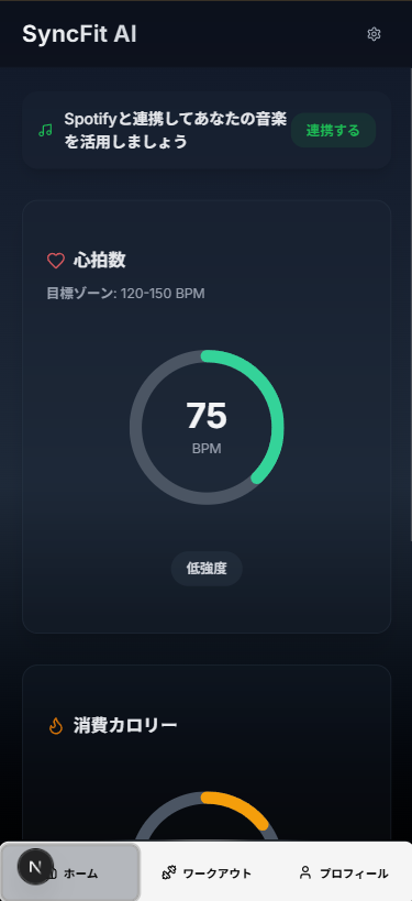 SynicFit(シニックフィット)は、あなたのフィットネス体験を革新する、AI搭載リアルタイム心拍数・カロリーフィットネスアプリです。 ジムでのグループエクササイズで感じた、仲間との熱い競争と自己の限界を超える高揚感を、いつでもどこでもあなたのスマートフォンで再現します。 【SynicFitが提供する2つの体験】 ①リアルタイム心拍数・カロリーバトルで限界を突破! リアルタイムデータにより、心拍数と消費カロリーを可視化。現在のパフォーマンスを瞬時に把握し、目標達成までの道のりを明確にします。アプリ内のリーダーボード機能やバーチャルライバルとの対戦モードを通じて、仲間や過去の自分と競い合いながら、楽しく、そして効率的に運動のモチベーションを高めます。 ②「頑張ろう」を引き出す革新的なUI/UX 数値の羅列ではない、あなたのモチベーションを刺激するダイナミックなUI演出。心拍数ゾーンに応じたカラーリングの変化や、目標達成時の視覚的なフィードバック、達成感を促すメッセージが、あなたの「あと少し頑張ろう」を引き出し、運動を単なる日課から「楽しい挑戦」へと変えます。 SynicFitは、データとAIの力で、あなたのフィットネスを「記録」から「感動」へ。 さあ、SynicFitと共に、あなたの最高のパフォーマンスを引き出し、新たなフィットネスの喜びを体験しましょう!