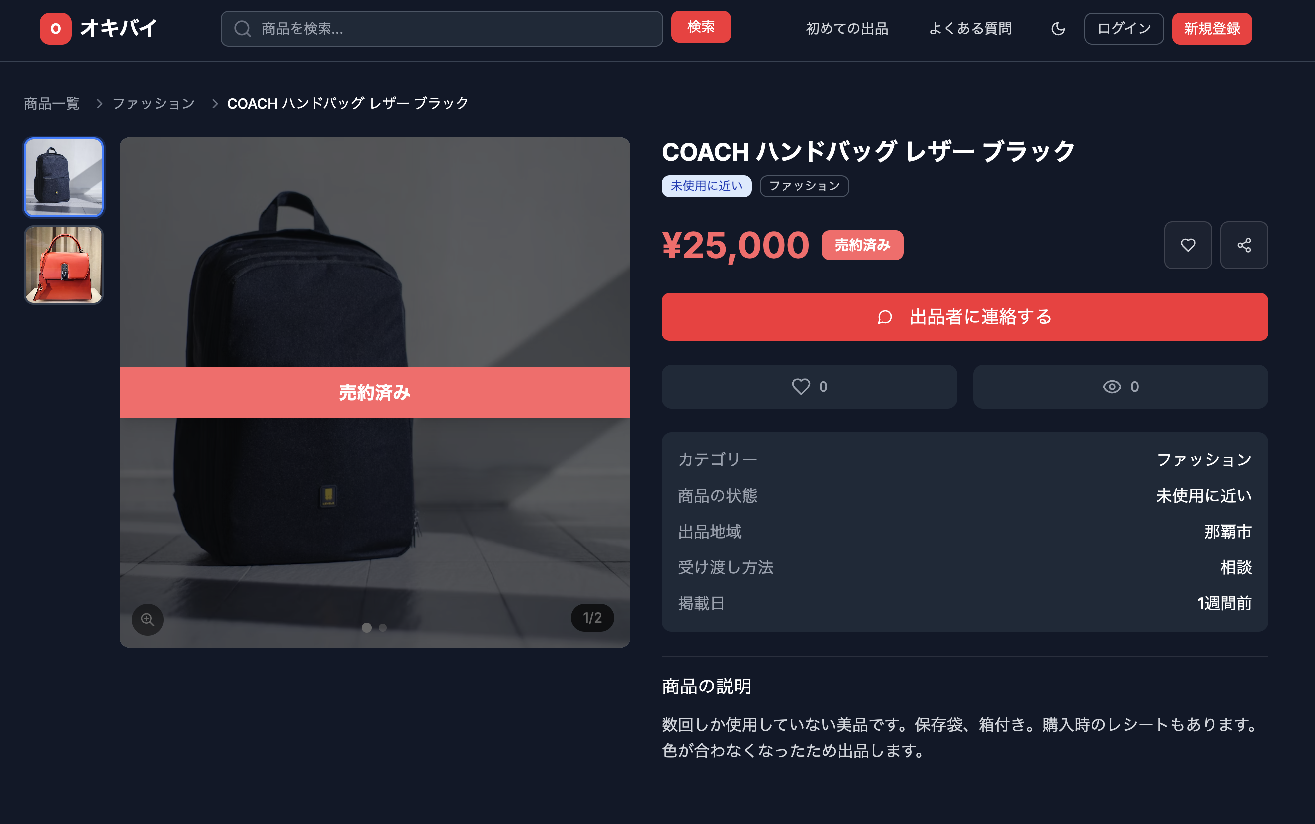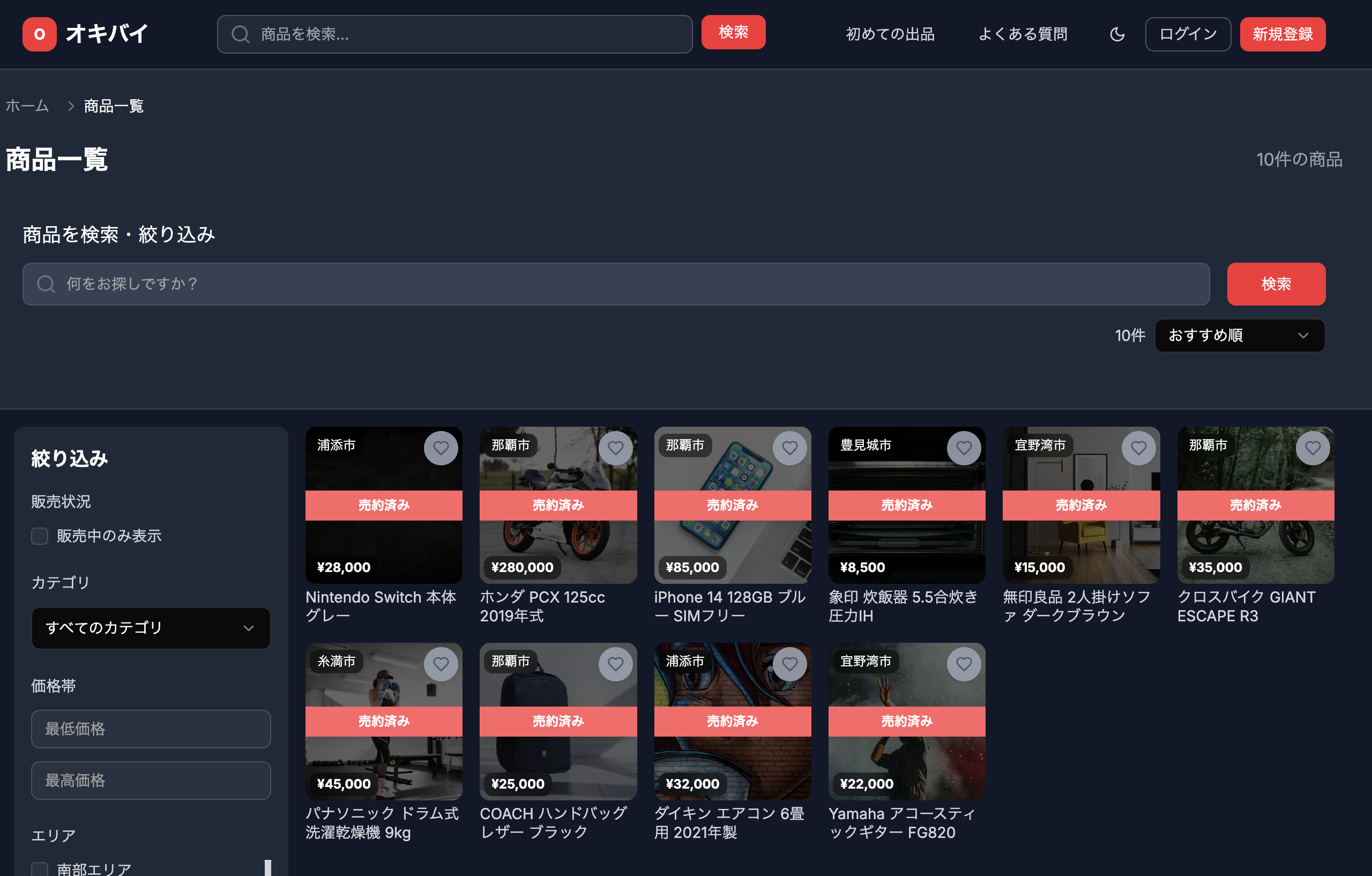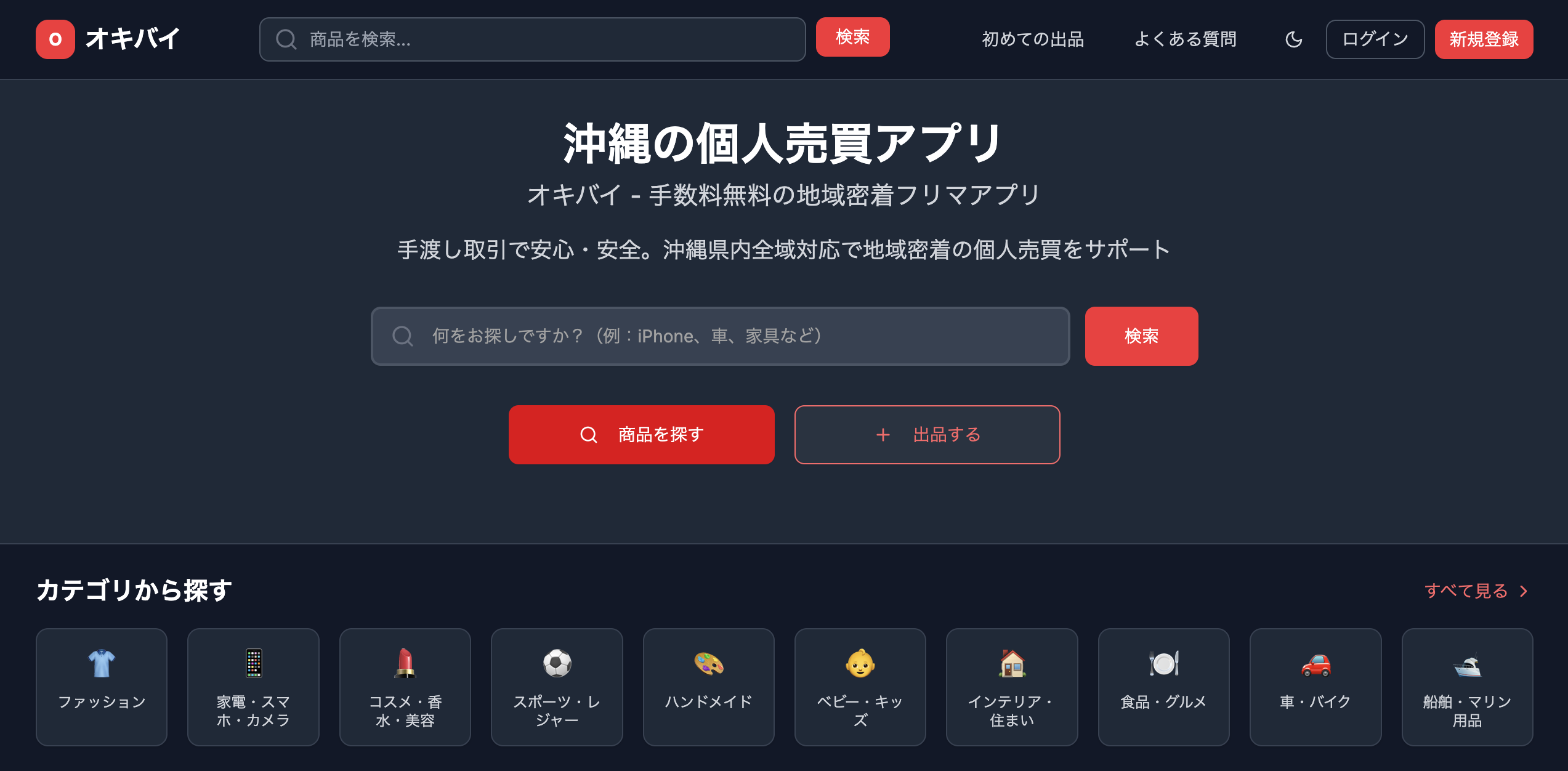 「オキバイ」は、沖縄県内に特化した地域密着型のC2Cマーケットプレイスです。 取引は基本的に手渡しが中心で、配送が難しい大型商品や、沖縄ならではのアイテムなど、地元に根ざした売買を可能にします。