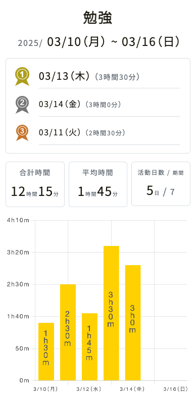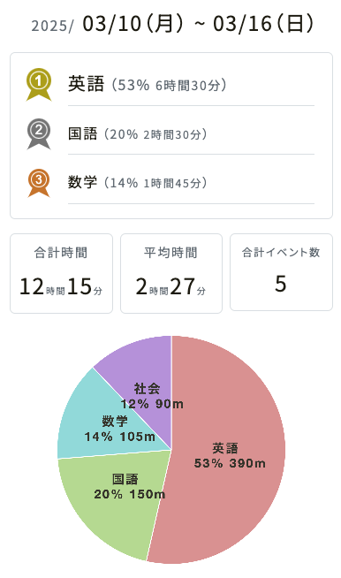 GoogleカレンダーやOutlook予定表のスケジュールから、例えば1週間でどんな予定があったかを比率で、「開発」をどのくらいやったかを推移で見ることができます。