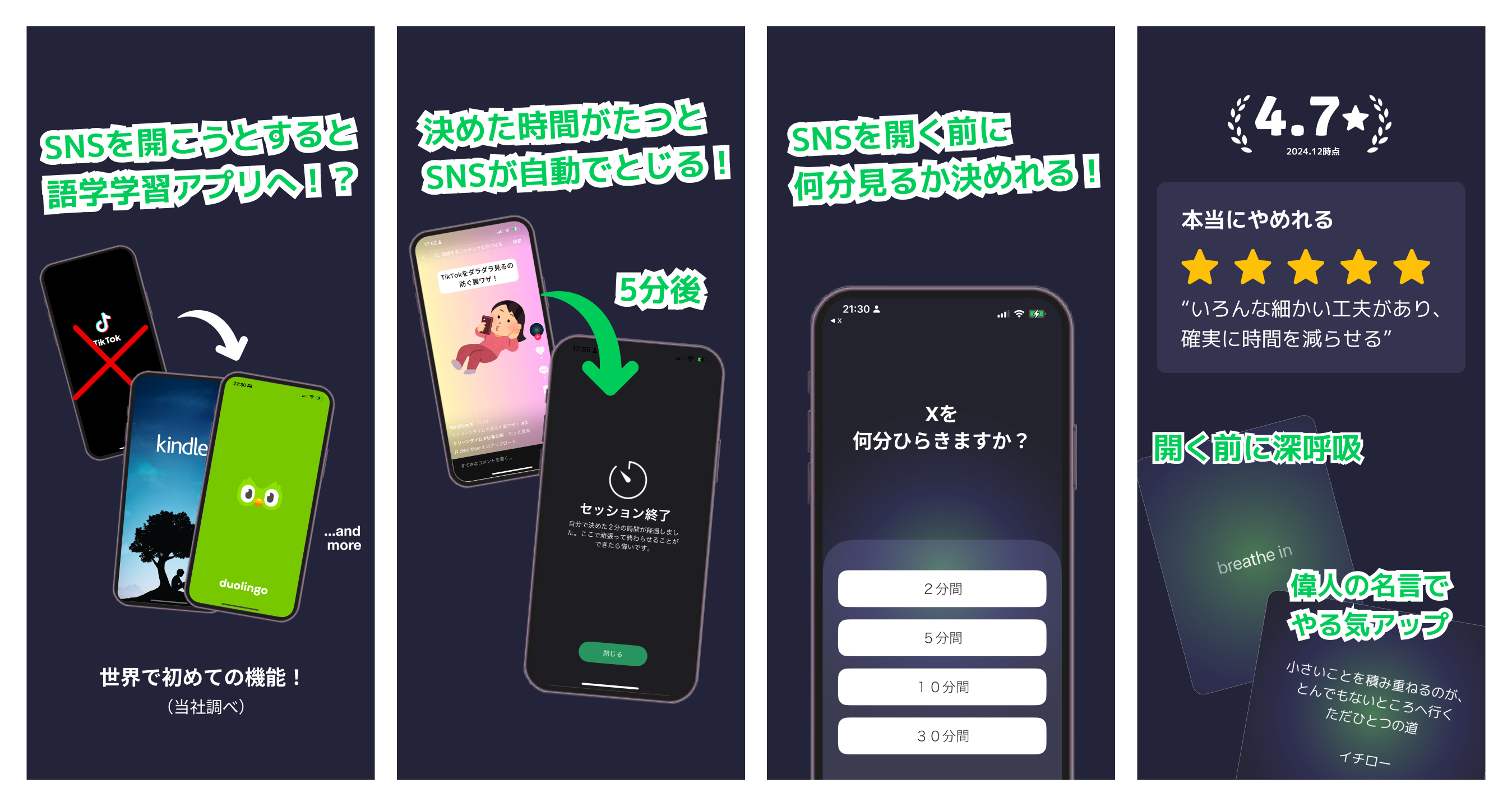 SNSを開こうとするとデュオリンゴやKindleが開くデジタルデトックスアプリ
