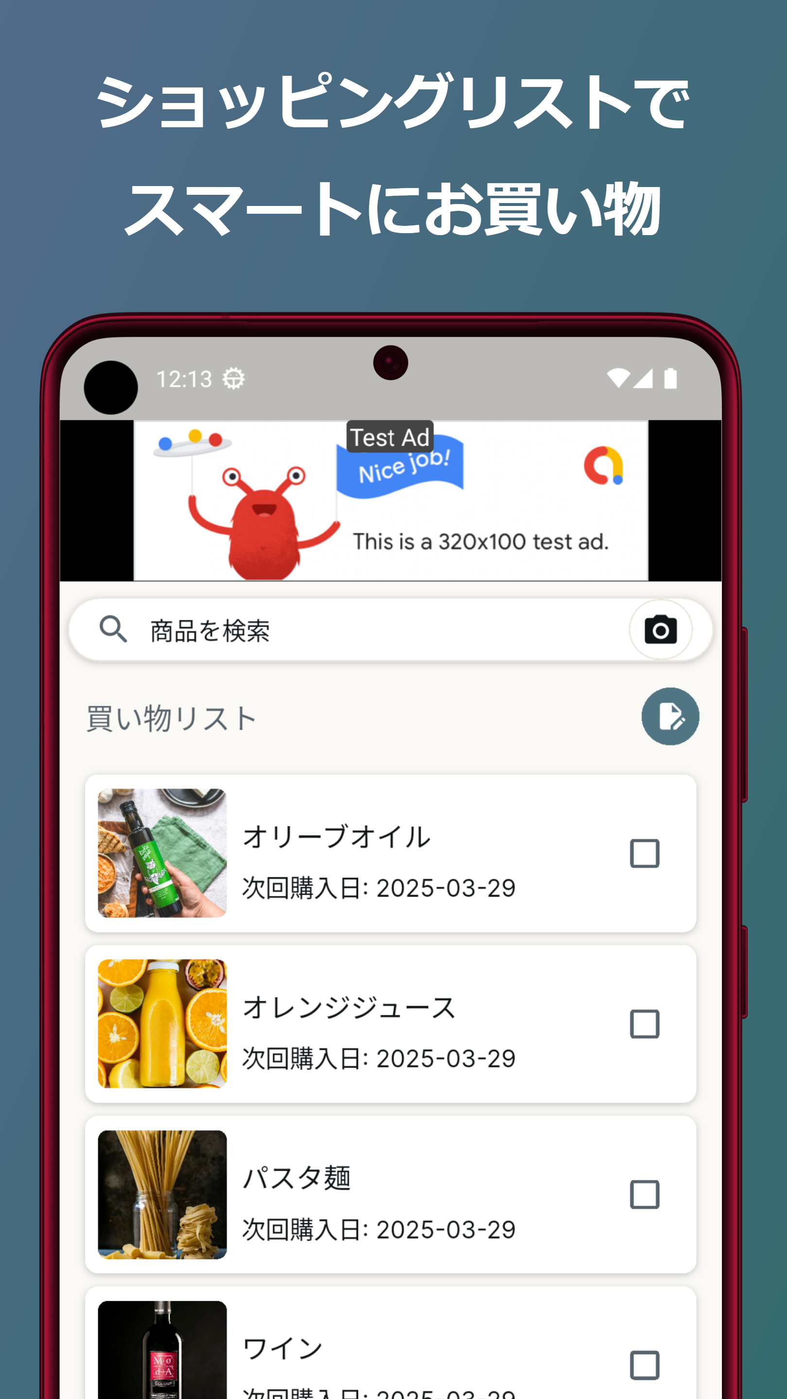 Tanukiは、日々のお買い物をもっと便利にするショッピング管理アプリです。購入予定の商品をショッピングリストとして作成し、計画的なお買い物ができます。 主な機能 ✅ 購入予定の商品をリストに追加して、ショッピングリストが作成できます。 ✅ バーコードスキャンで商品を検索できます。初めて購入する商品やもっと詳細を知りたい商品は、店頭で購入前に詳細情報や口コミをチェックできます。 ✅ 定期的に購入する商品には、次回購入日が設定可能です。購入日になると、Tanukiが次回のショッピングリストを自動で作成するので、必需品の買い忘れを防止することができます。 こんな方におすすめ! ・事前に買い物リストを作成して、買い忘れなく買い物をしたい方 ・定期購入する商品を忘れずに管理したい方 ・バーコードスキャンで商品の情報をすぐに確認したい方 ・愛用の商品を1つのアプリでまとめて管理したい方 毎日のお買い物をもっとスムーズに!Tanukiで快適なショッピング体験を始めましょう。