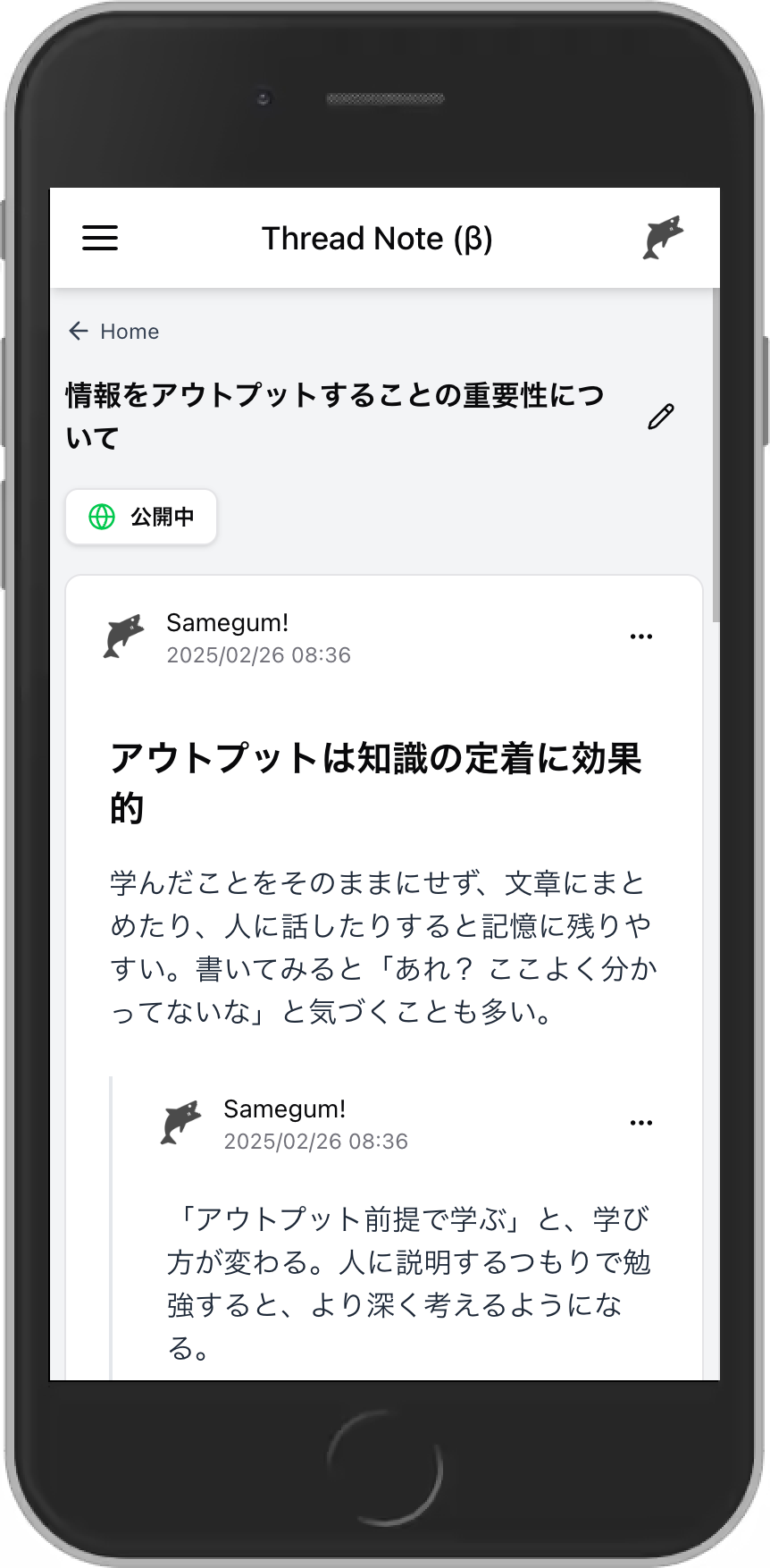 Thread Note はスレッド形式で手軽に情報を残すことができるサービスです。 流れるように情報をアウトプットして思考を紡げます。