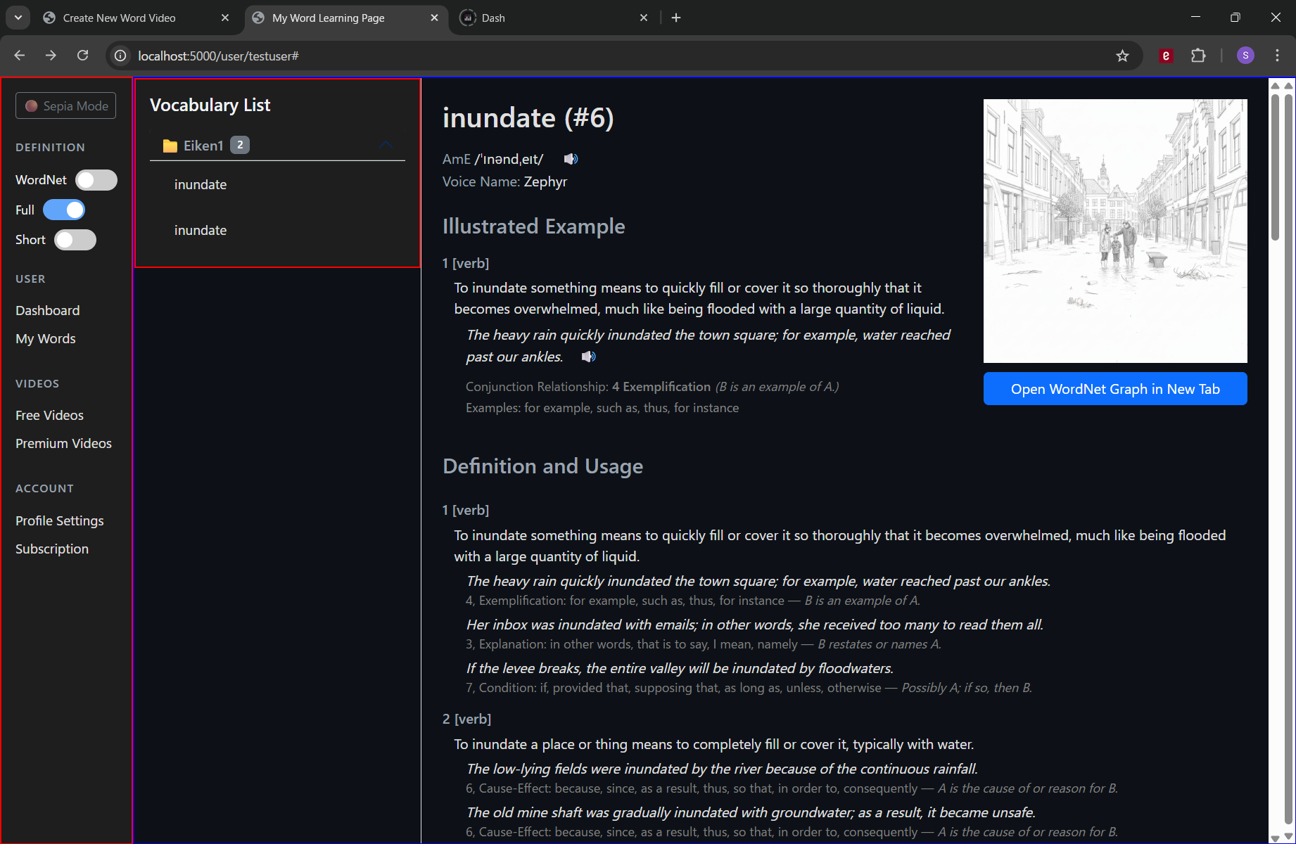 過去の研究より、語彙力は、個人の成長、仕事の成功、知的発達と深く関わっています。フリアン工学研究所が数千人を対象に調査したところ、語彙力が高い人ほど収入も高いことが明らかになりました。研究所の所長は、「言葉は他者の考えを理解し、自分の思考を形づくるための道具である」と説明しています。つまり 豊かな語彙は、より深い思考と成功につながると言えます。(Norman Lewis, 2014) Normanによると、語彙は何歳からでも伸ばすことができるとしています。そのために必要なのは「言葉を覚えたい」という気持ちではなく、「新しい知識や考え方を学びたい」という意欲です。言葉は知識を表す道具であり、知識が増えれば自然に語彙も増えていきます。成功した人たちは語彙が大きかったから成功したのではなく、知識を身につけた結果、語彙も豊かになったのです。子どもが多くのことを吸収しながら驚くほど速く語彙を増やしていくように、私たちも新しい考えや言葉を学ぶことで成長し続けることができます。(Norman Lewis, 2014) [文脈 Context] 文脈(context)から語の意味を推測する力は、語彙学習や読解に欠かせない重要なスキルです。 語彙は授業だけでは全て教える時間がないため、推測できる力があれば、学習者は自分で語彙を増やすことができます。また、文脈の中で繰り返し語に出会うことで、意味の幅をより深く理解できます。さらに、推測できれば辞書を使う回数が減り、読書を中断せずに読み進められます。辞書を使う場合でも、まず推測することで適切な意味を選ぶ助けになります。推測には手がかりの解釈や意味の予測が伴うため、この力を伸ばすことは読解力の向上にもつながります。(D. F. Clarke & I. S. P. Nation, 1980) 本サービスでは、未知の英単語を文脈から推測し易くすることを目論見とし、例えば次のような因果関係(Clarke & Nation (1980)) を使用して構成した例文を掲載しています。 6, Cause-Effect, "because, since, as a result, thus, so that, in order to, consequently", A is the cause of or reason for B. [語源 Etymology] 語源のセクションでは、単語の意味を形づくるギリシャ語やラテン語の語根と、同じ語根をもつ関連語を学びます。関連する語をまとめて学ぶことで、多くの語を扱っても混乱せず語彙を広げることができます。(Norman Lewis, 2014) 例えば、inundateの語源セクション(下の画像参照)では、共通の語源を持つ関連語の意味も踏まえて、次のような内容が記載されています: inundate, surround, abound はいずれも、ラテン語の「波(unda)」という同じ語根からできた言葉です。inundateはin-(中へ)+ unda(波)から生まれ、波が中へ流れ込むように「洪水のようにあふれる/圧倒される」という意味になります。surroundはsur-(上・外側から)+ unda(波)に由来し、本来は波が上からあふれかかるニュアンスでしたが、そこから「四方から取り囲む」という意味に変化しました。aboundはab-(外へ・離れて)+ unda(波)が語源で、波が外にあふれ広がるイメージから「豊富にある」「大量に存在する」という意味になりました。現在の使われ方は異なっていても、いずれも「波があふれ広がる」という共通のイメージを語根に持っています。
