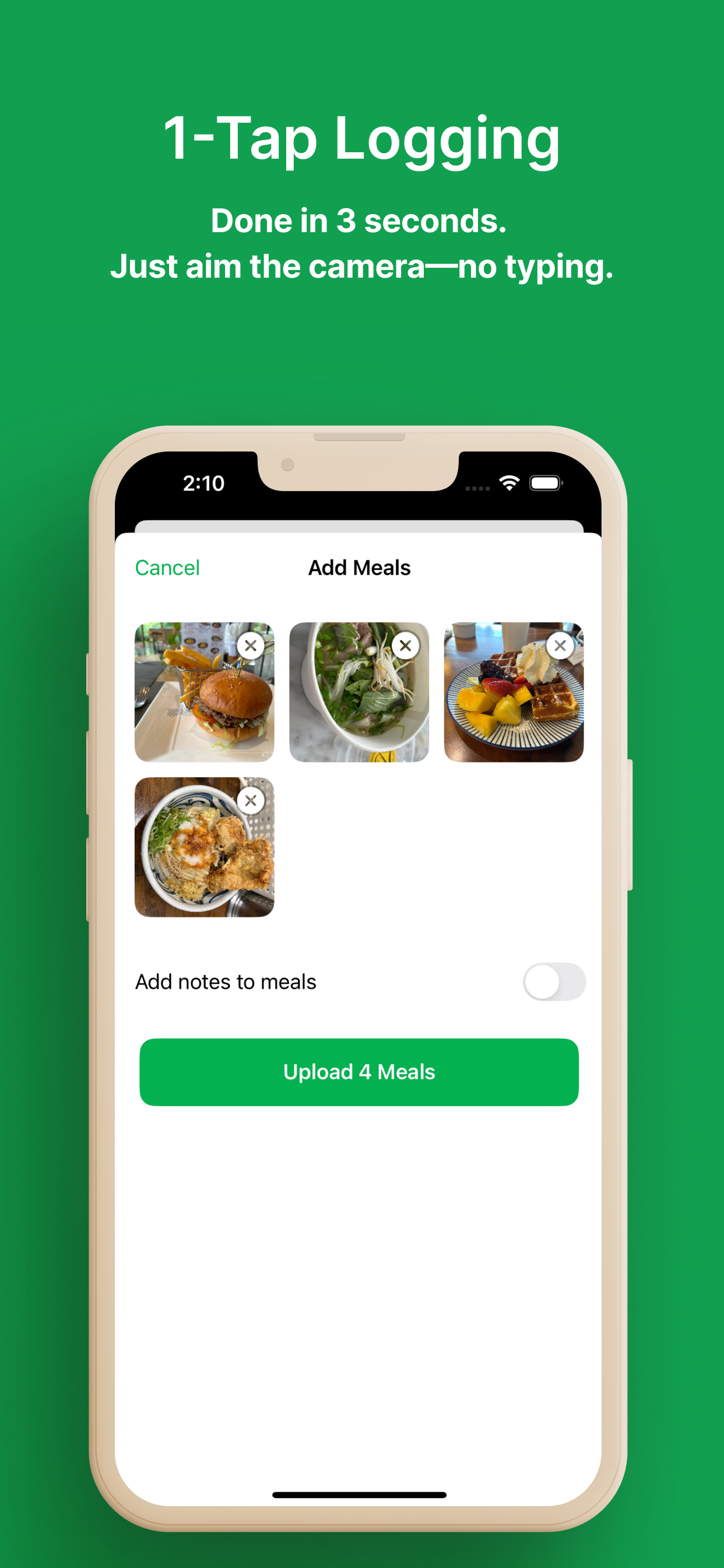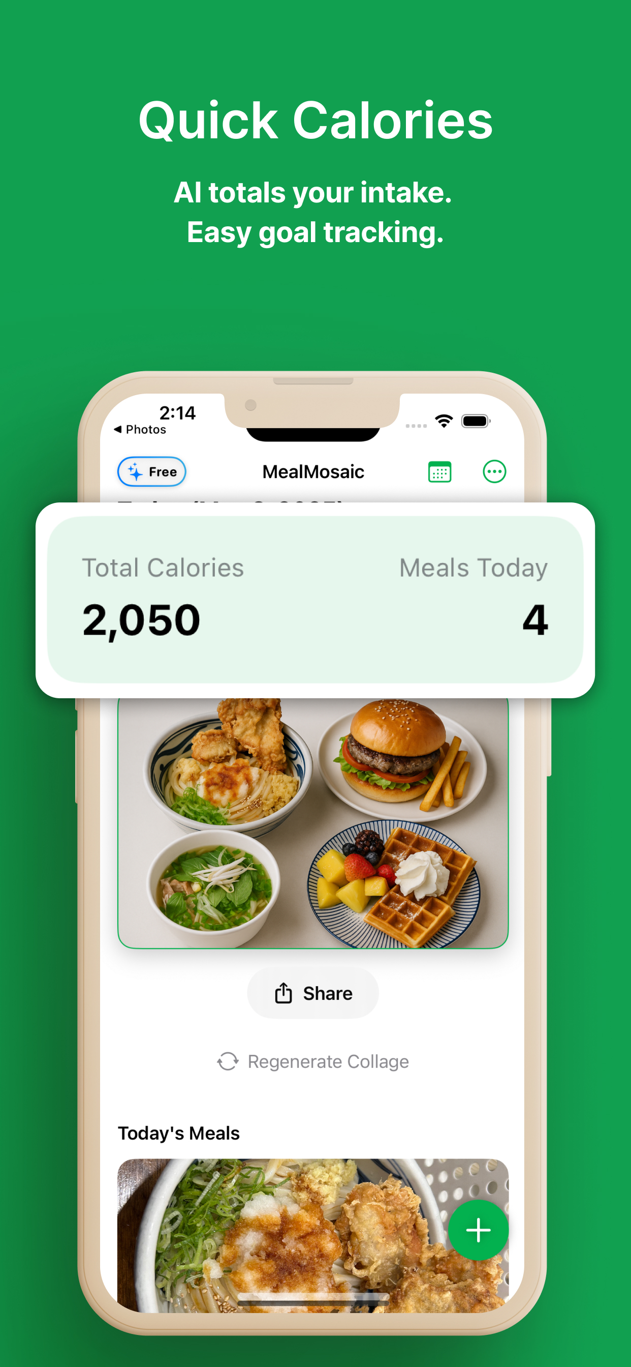 食べたものの写真をアップするだけで、その日食べたものを1枚の写真で管理できます。カロリー計算も自動で行います。