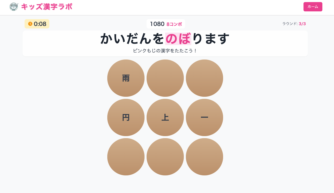 キッズクッキングラボを娘に遊んでもらったところ、漢字ゲームも欲しいと言われたので、"12 Startups in 12 Months"の第二弾として作成しました。 キッズ漢字ラボは「楽しみながら漢字の読み書き身につく」を目指しています。 ※小学校1-3年生で学ぶ漢字が対象 ■コンテンツ フラッシュカードで覚える&覚えた漢字をゲームコンテンツで定着させるができるようなつくりになっています。 ・フラッシュカード:漢字と読み方を一致させる ・クイズ(漢字→よみ、よみ→漢字):文章中の漢字の使い方を覚える ・漢字もぐらたたき:読み方や漢字を素早く見つけて反応する実践的練習 ・漢字カルタ:読み方や漢字を素早く見つけて反応する実践的練習