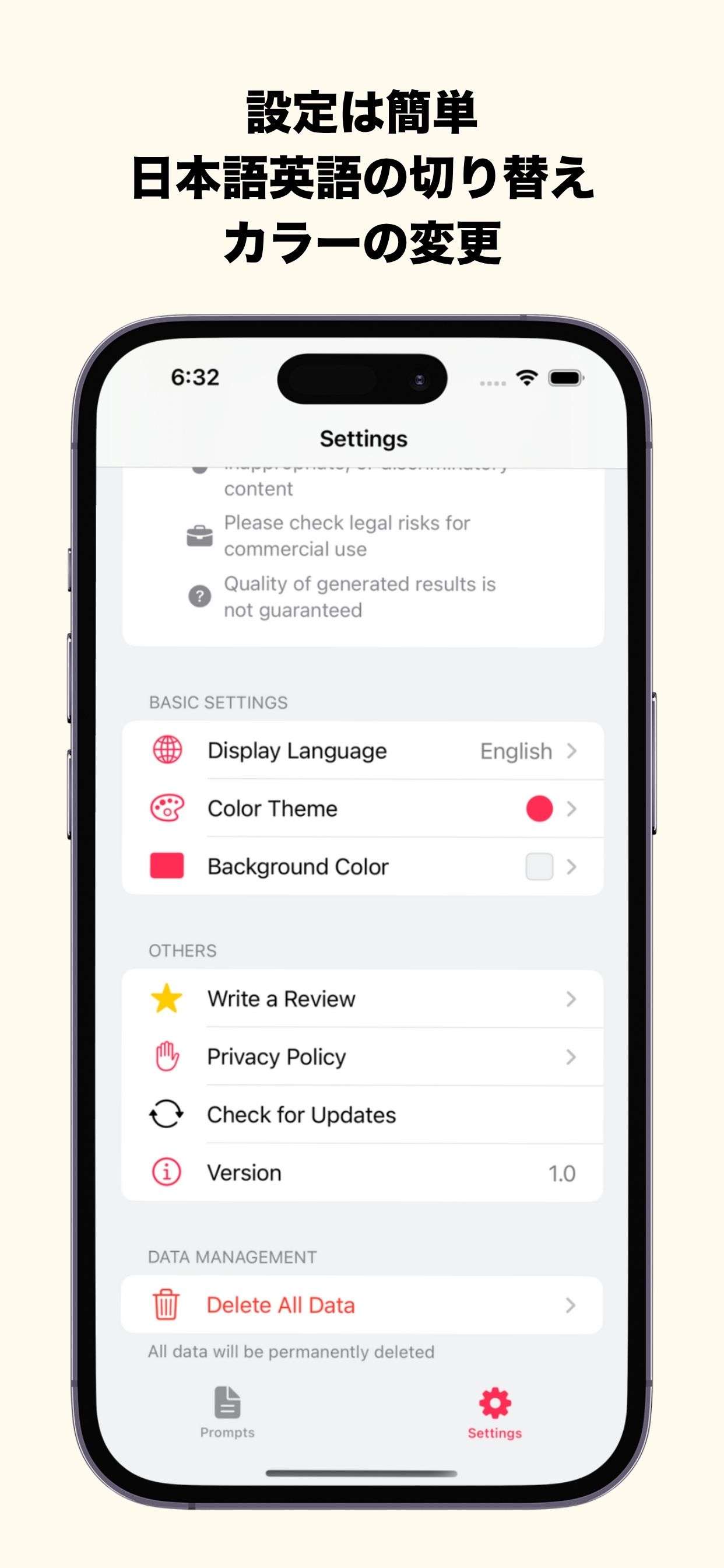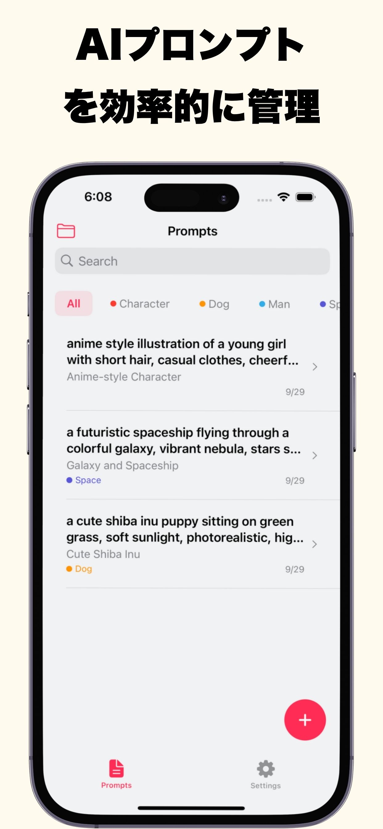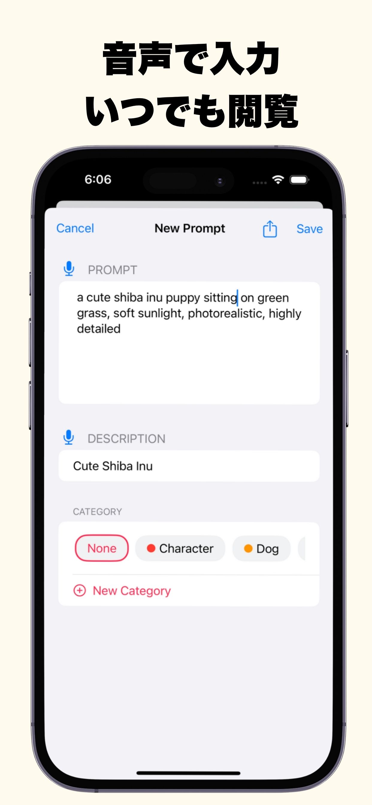 プロンプトを保存する軽量シンプルなアプリです。 是非、一度お試しください。 (画像生成のお試しも出来ます。) プロンプトの管理がもっと簡単に。 プロンプトメモで、効率的なAI活用を始めよう。 🤖 AIプロンプトの作成、保存、管理をスマートに 🎤 音声入力対応で、思考をそのまま形に 📱 シンプルなUI、直感的で使いやすいインターフェース 🚀 主要機能 📝 プロンプト管理 AIプロンプトを効率的に管理 簡単作成: 思いついたプロンプトをすぐに記録 カテゴリ分類: 用途別にプロンプトを整理 検索機能: 必要なプロンプトを瞬時に検索 使用回数トラッキング: よく使うプロンプトが一目でわかる 🎤 音声入力対応 ハンズフリーでプロンプト作成 ハンズフリー入力: マイクボタンで音声からテキストへ自動変換 効率的な記録: タイピングの手間を省いて素早くプロンプトを作成 アイデアを逃さない: 思いついた瞬間に音声で記録 🔧 便利な機能 使いやすさを追求した設計 シェア機能: 作成したプロンプトを他のアプリと共有 更新履歴: いつ作成・更新したかを自動記録 シンプルなUI: 直感的で使いやすいインターフェース 是非、一度お試しください。