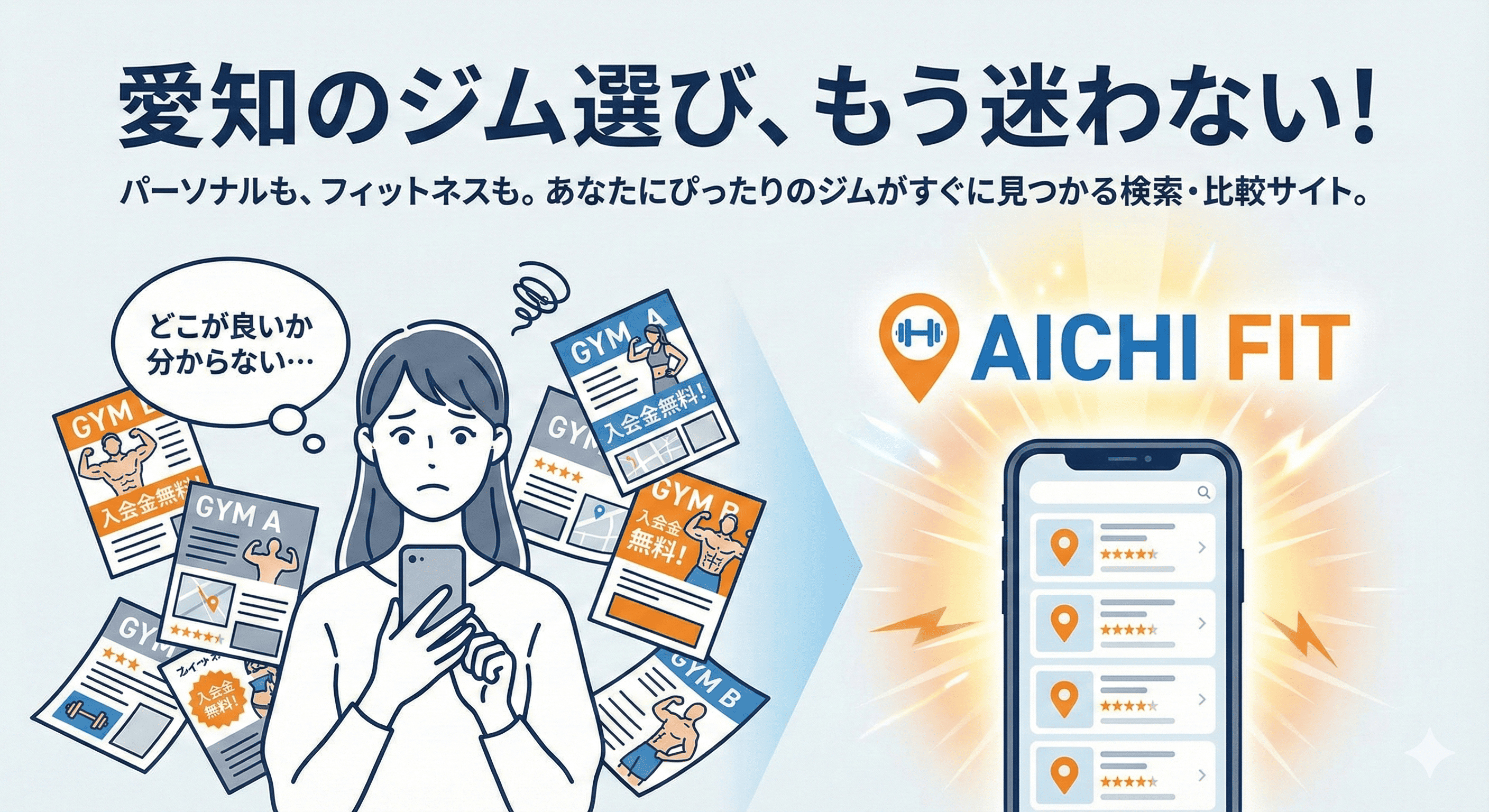 AichiFitは、愛知県・名古屋エリアのパーソナルジム選びをサポートする地域特化型マッチングサービスです。 「自分に合うジムが分からない」「高い料金を払って失敗したくない」というユーザーのために、厳選された優良トレーナーやジム情報を提供。LINEを通じた無料診断で、目的や予算に最適なジムをご提案します。