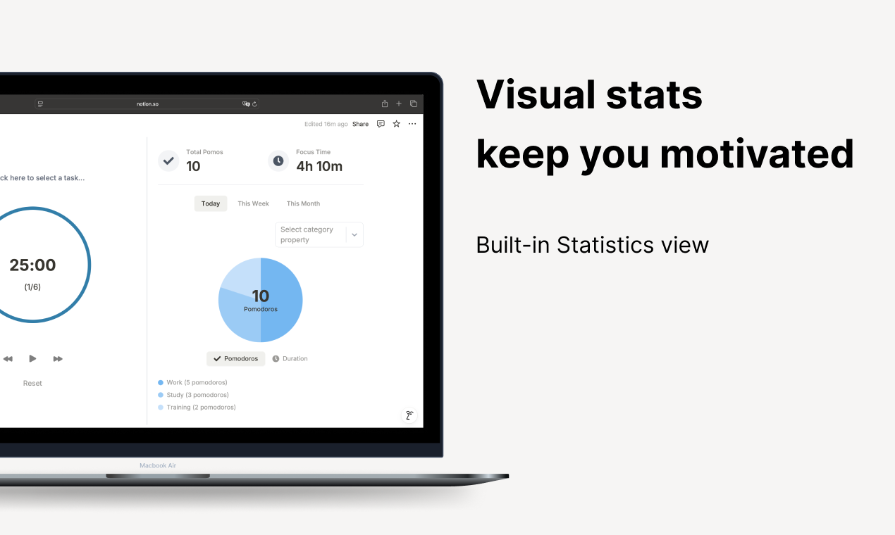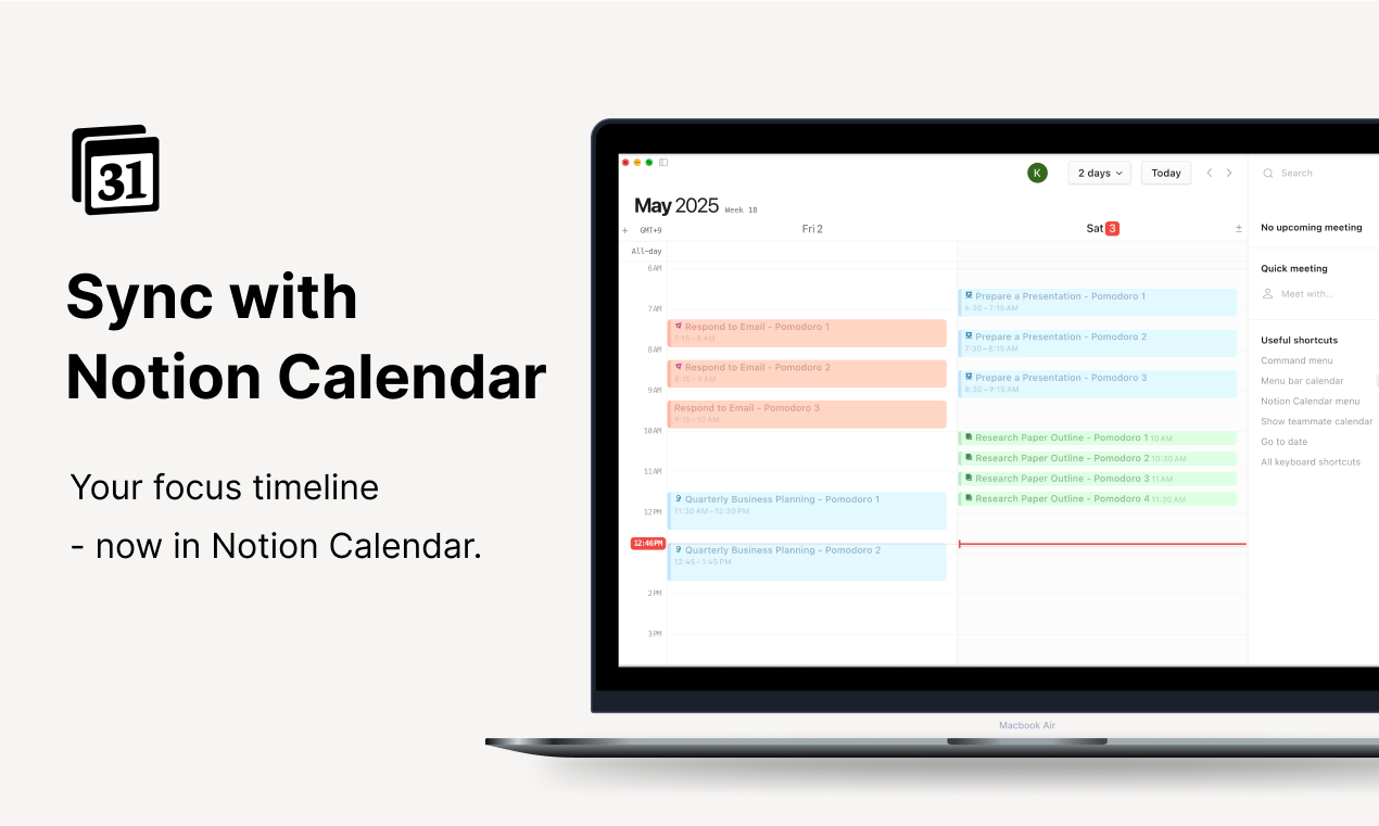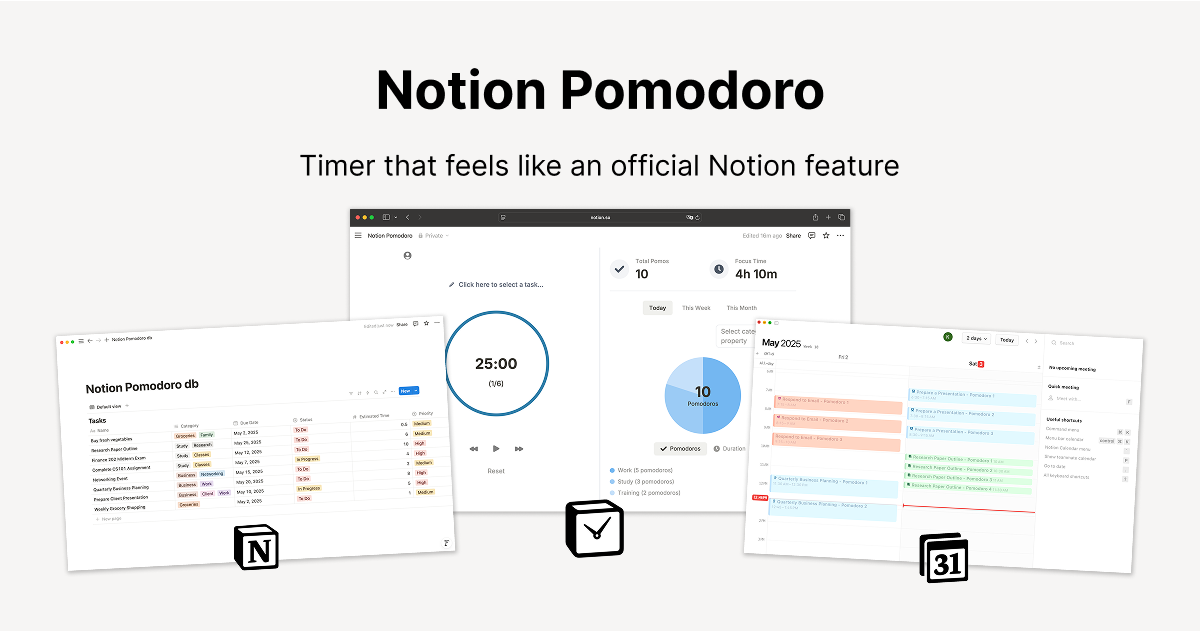 「気づいたら、午前中終わってた...」 なんて、感じたくない、感じさせたくない。 🔗 Notonデータベースと完璧に同期 「時間管理のためにわざわざ別アプリを開く、あの地味なストレス…」 Notionのデータベースからタスクを直接読み込み、あなたの頑張りも自動保存。 📅 Notonカレンダーに集中時間を自動記録 一つのカレンダーで、全て見れる。 📊「成果の可視化」 「何に、どれくらいの時間を使っているか」が一目瞭然