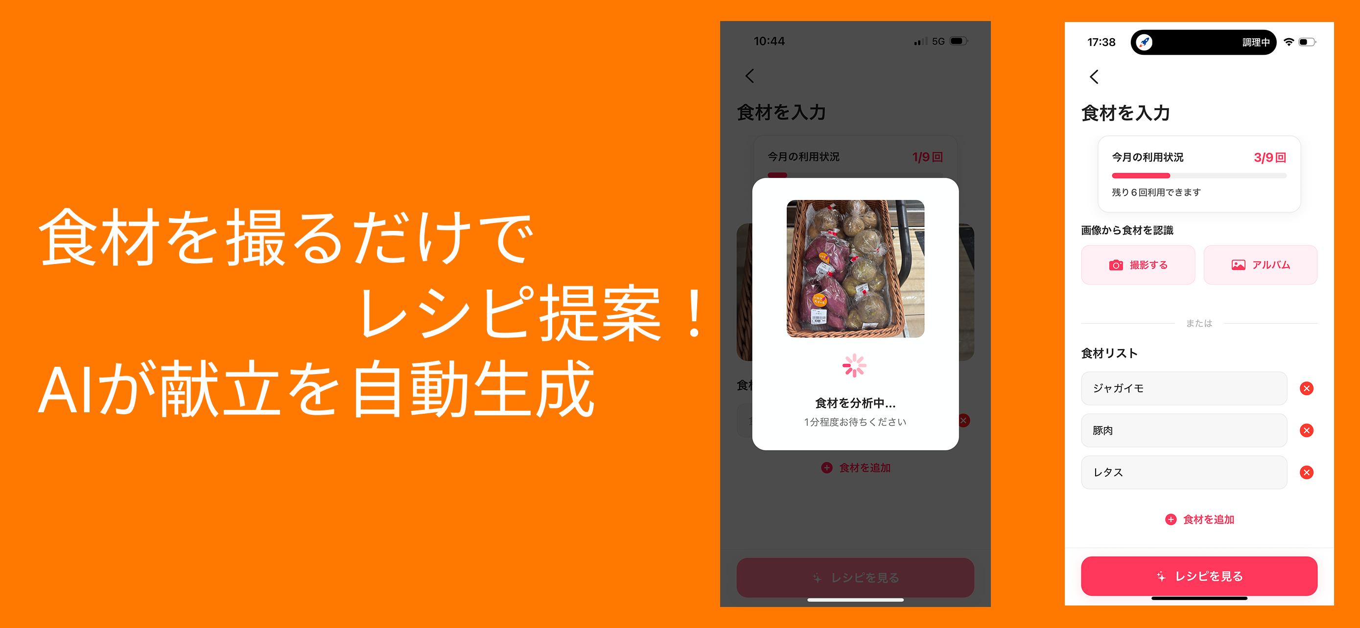 食材の写真を撮影するとAIがレシピ提案をしてくれます