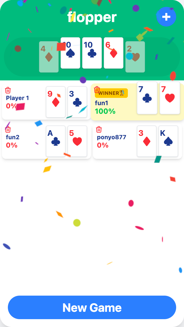 自動でポーカーのテキサスホールデムが進むアプリです! ご飯を奢る人を決めたりするような抽選に使えます 世界のヨコサワさんが好きでよく動画に出てくるモバイルアプリのWeb版をUIを新しくして出してみました!