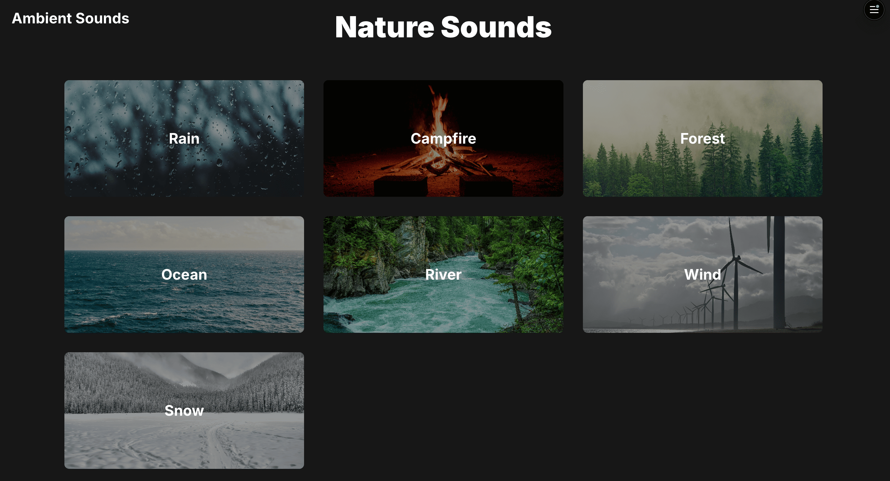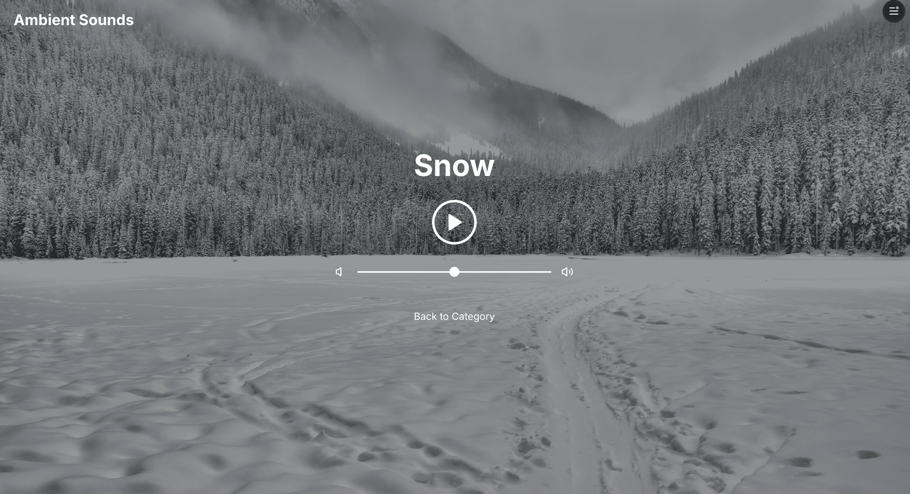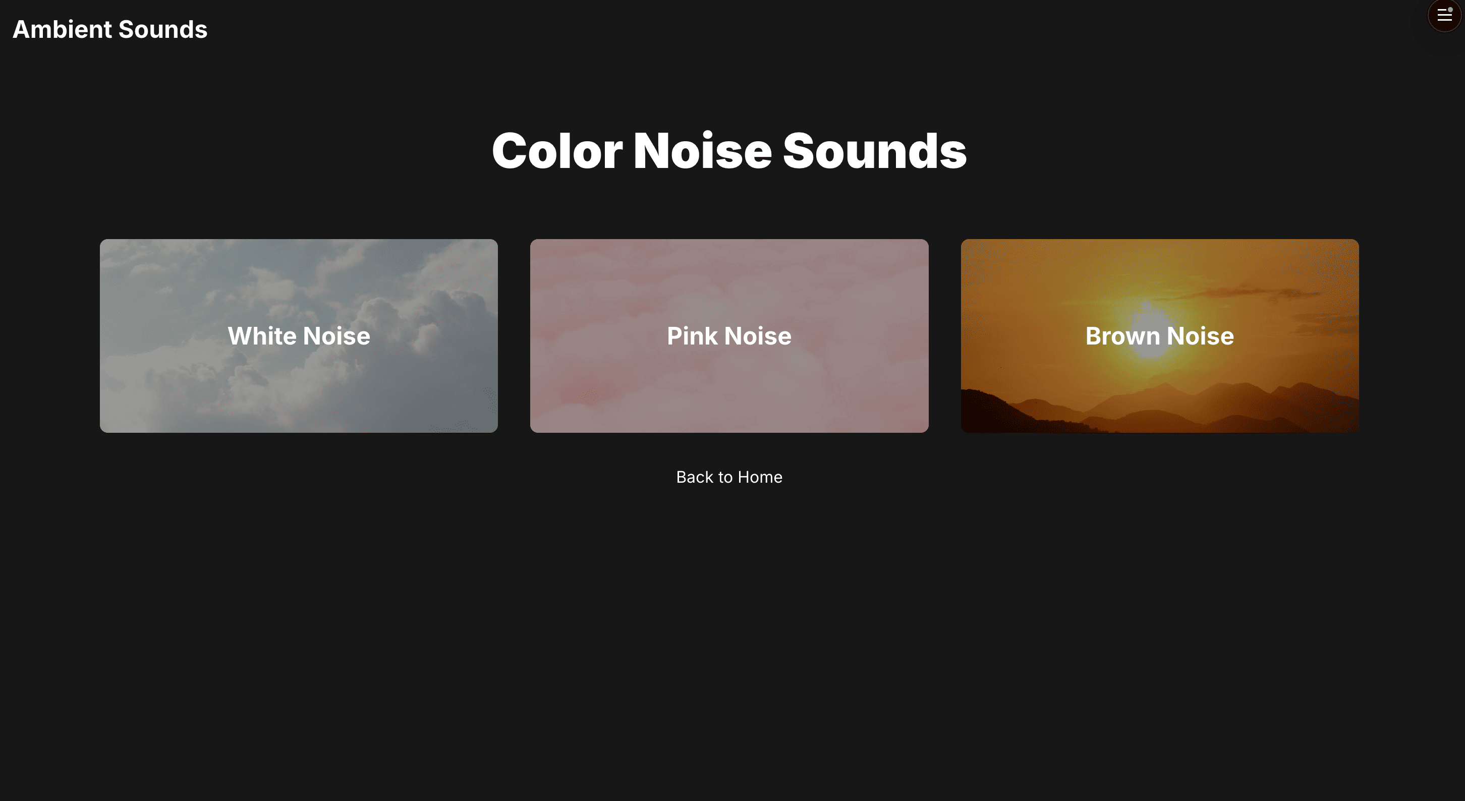 【Ambient Sounds】自然音からカラーノイズまで、あらゆる環境音を美しいUIで楽しめるWebサービス。 ■特徴 ・雨、森、キャンプファイヤーなど10種類以上の高品質な環境音 ・作業集中、睡眠、瞑想など様々なシーンで活用可能 ・モバイル対応の洗練されたミニマルデザイン ・広告なしでシンプルな使用感 ・音量調整や再生コントロールも直感的に操作可能 在宅ワークの作業BGMや、リラックスしたい時間に。 モダンなデザインと高音質サウンドで、あなたの日常に最適な音環境を提供します。